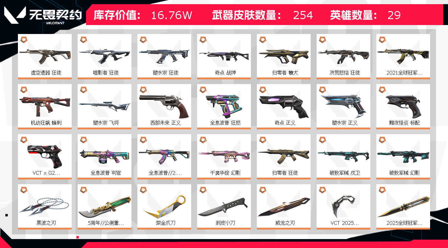 17W2400R✨三棱✨21+22+25冠军套神话挂饰✨35近战镰刀黑波紫金VCT✨30狂徒流脓虚空