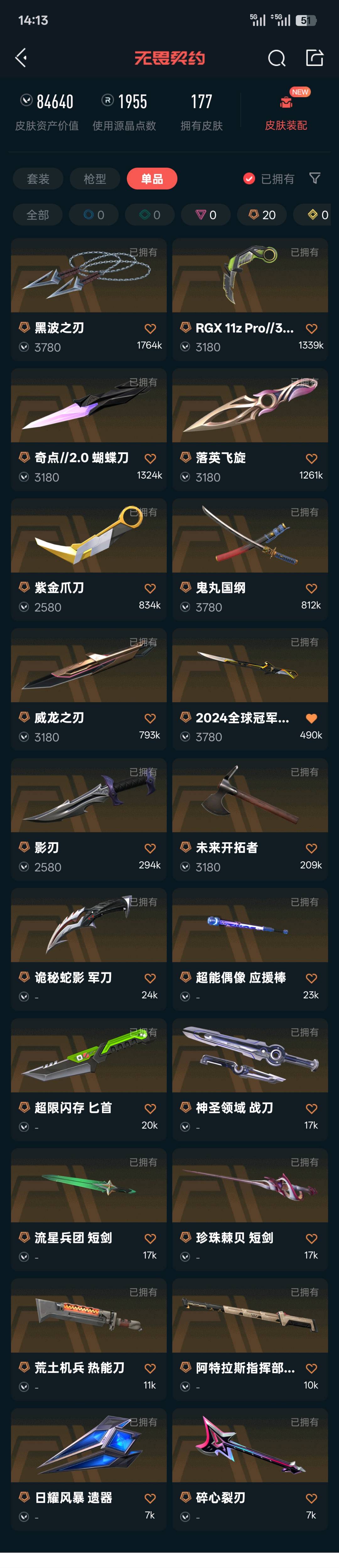 24冠军套/黑波显卡紫金爪/鬼丸奇点蝴蝶刀/狂徒混沌显卡光荣双城盖亚紫金猫猫弃王全息/幻影西部侦查;西部未来 奥丁,黑波之刃,紫金爪刀,威龙之刃,盖亚的复仇 狂徒,掠影 戍卫,掠影 狂徒,