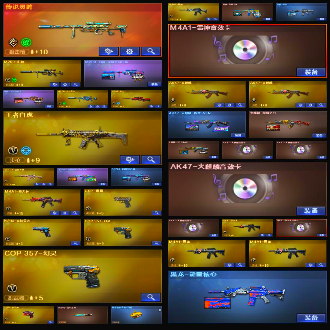 【江西一区】【幻神2皮】【6烈龙】【死亡之眼】【幻灵套装X5套】【竞技荣光套装X2套】【堕天神套装X6套】【堕天神套装X6套】【传说灵眸】【M200-幻神】【M200-幻神-荣耀世冠白鲨】【幻神-CFS2022】【M200-竞技荣光】【AWM-裁决】【王者白虎-觉醒版】【QBZ03-金色蔷薇】【QBZ03-金色蔷薇-斗鱼皮肤】【QBZ03-荣耀世冠白鲨】【M4A1-堕天神】【USP-雷暴】【柯尔特-竞技荣光】【COP 357-幻灵】【COP-堕天神】【Knife-冠军之刃】【黄金猫猫手套-白鲨】【加特林-炼狱】【RPK-盘龙】【汤姆逊-烈龙】【死亡之眼】【电竞教官-云悠悠】【迷迭香】【乔伊教练】【瞳】【王者-葵-貂蝉】【王者凌霄】【影豹】【隼】【M4A1-雷神】【雷神-荣耀之魄】【雷神-星空】【M4A1-雷神音效卡】【AK47-火麒麟】【AK47-火麒麟-传奇EVEN】【火麒麟-华夏之心】【火麒麟-CFSTAR】【火麒麟-雷神】【AK47-火麒麟音效卡】【M4A1-黑骑士】【M4A1-黑骑士音效卡】【M4A1-黑龙】【黑龙-能量核心】【Barrett-毁灭】【毁灭-冠军之怒】【巴雷特-毁灭-CFPL冠军】【毁灭耀金皮肤】【毁灭-星空】【Barrett-毁灭音效卡】;USP-雷暴,Knife-冠军之刃,隼,电竞教官-云悠悠,RPK-盘龙,QBZ03-金色蔷薇,M200-幻神,