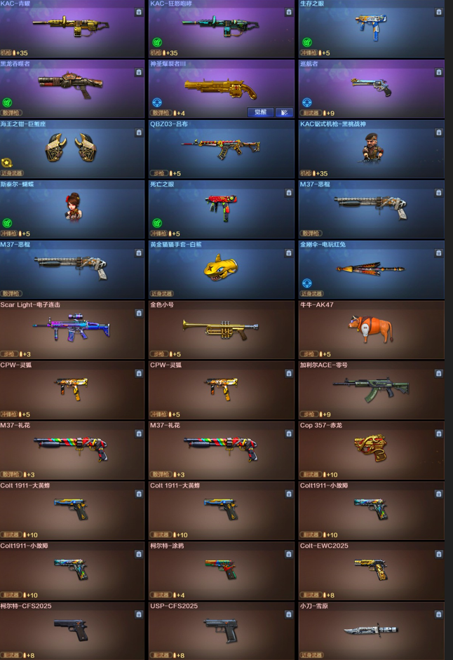 M200竞技荣光❤白虎❤USP雷暴❤QBZ蔷薇❤6烈蝴蝶❤6盘炼狱❤加利尔ACE零号❤黄金猫猫手套