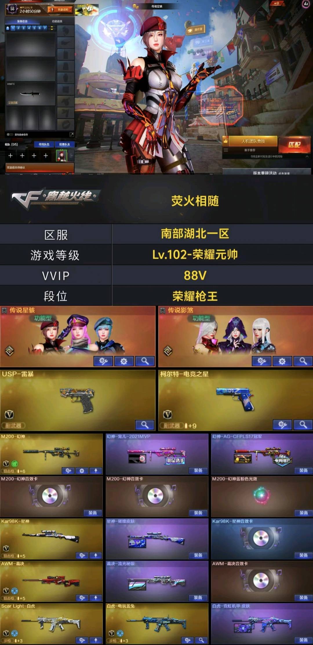传说星骇影煞❤️幻神宠儿+幻卡❤️星神裁决三件套❤️USP雷暴极品副手❤️⑥烈龙蝴蝶⑧音效卡冠军之薇