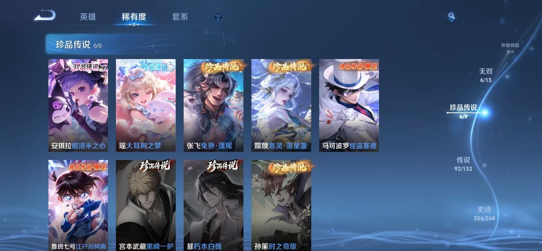 v10、12典藏520皮、马超无双飞将、韩信典藏、马可深海之熄、瑶珍品传说大耳狗之梦、青丘·九尾、枫霜尽、绯月行、前尘镜、至尊宝、天魔缭乱