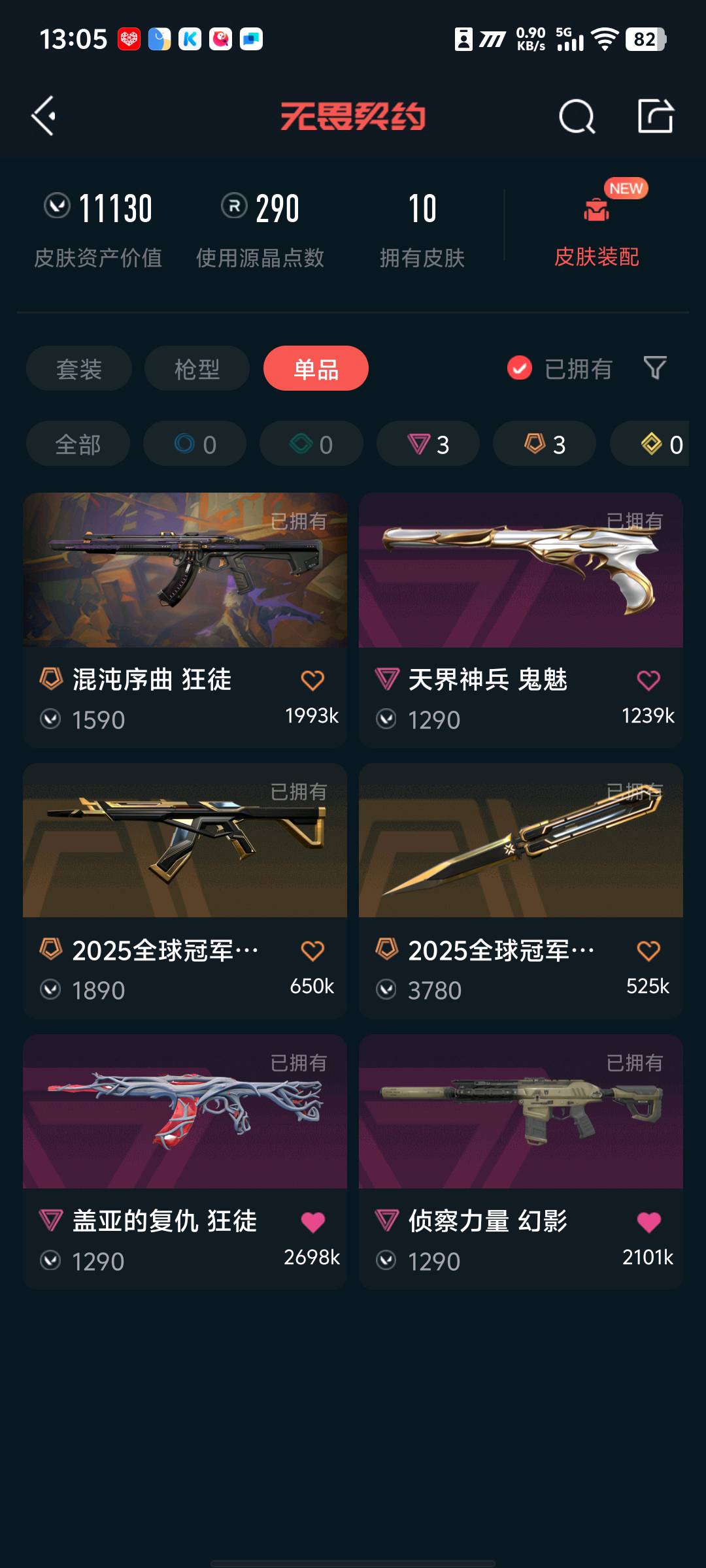 • 皮肤资产价值: 11130