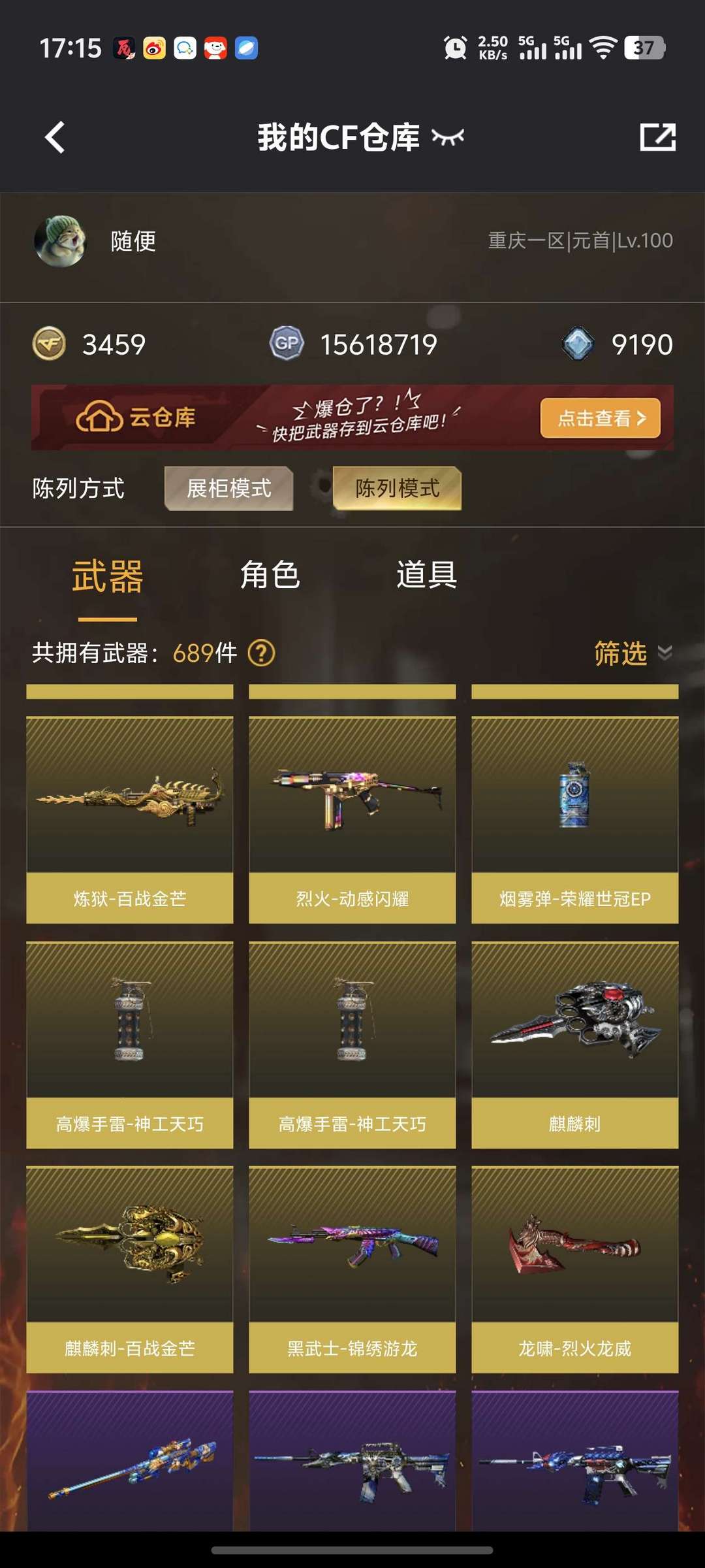 • 游戏区服:穿越火线 / 电信区 / 重庆一区