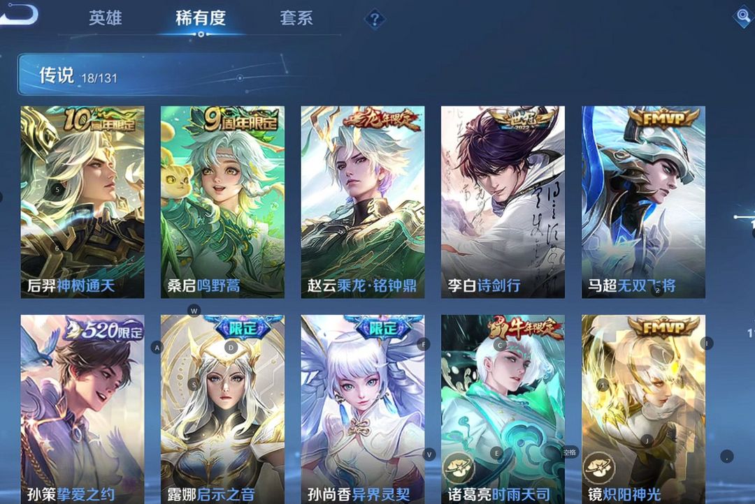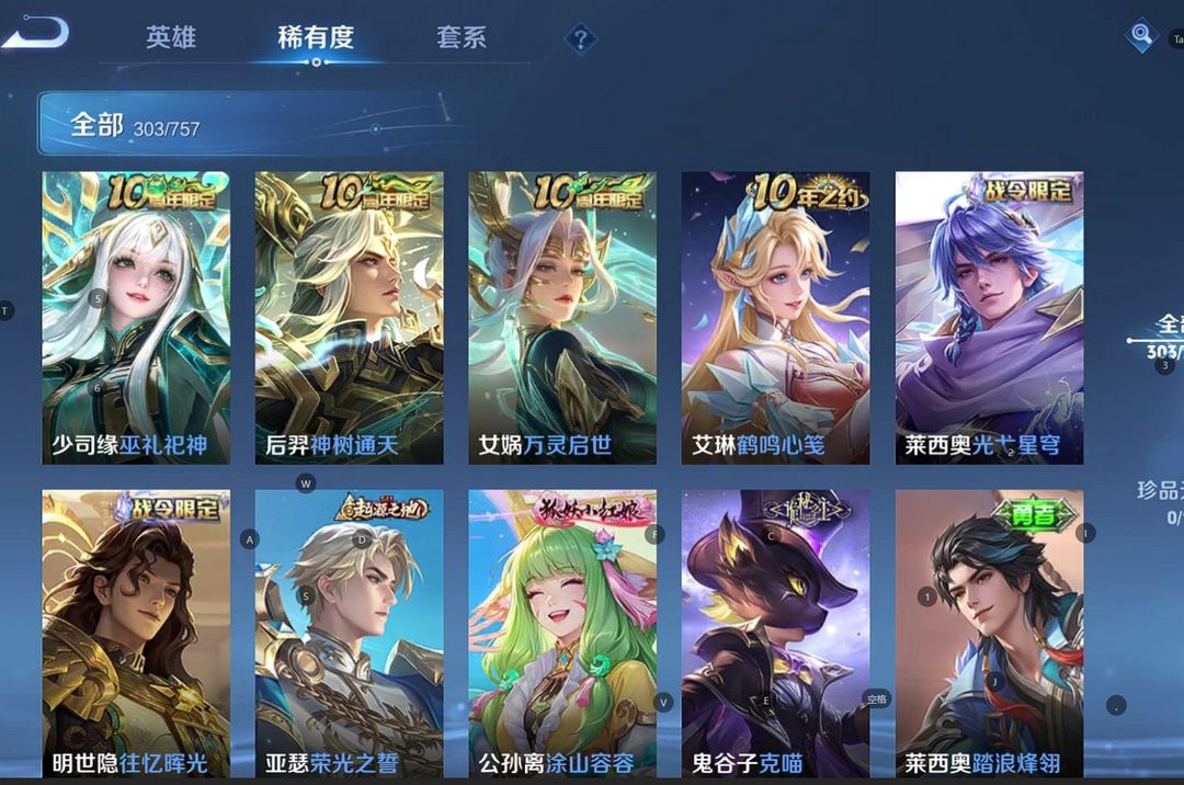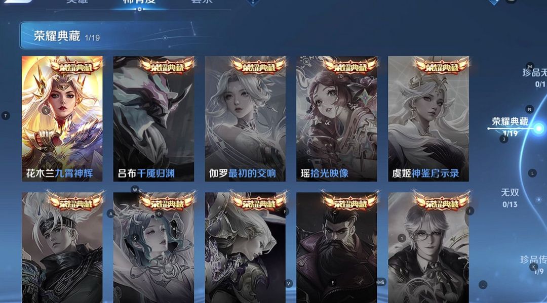 V10、543皮14水、吕布典藏-千魇归渊、愿照·九州拓、愿照·众生和、怪盗基德、伽罗星传说红枫、瑶典藏拾光映像、冥王哈迪斯、、龙年限定、齐天大圣