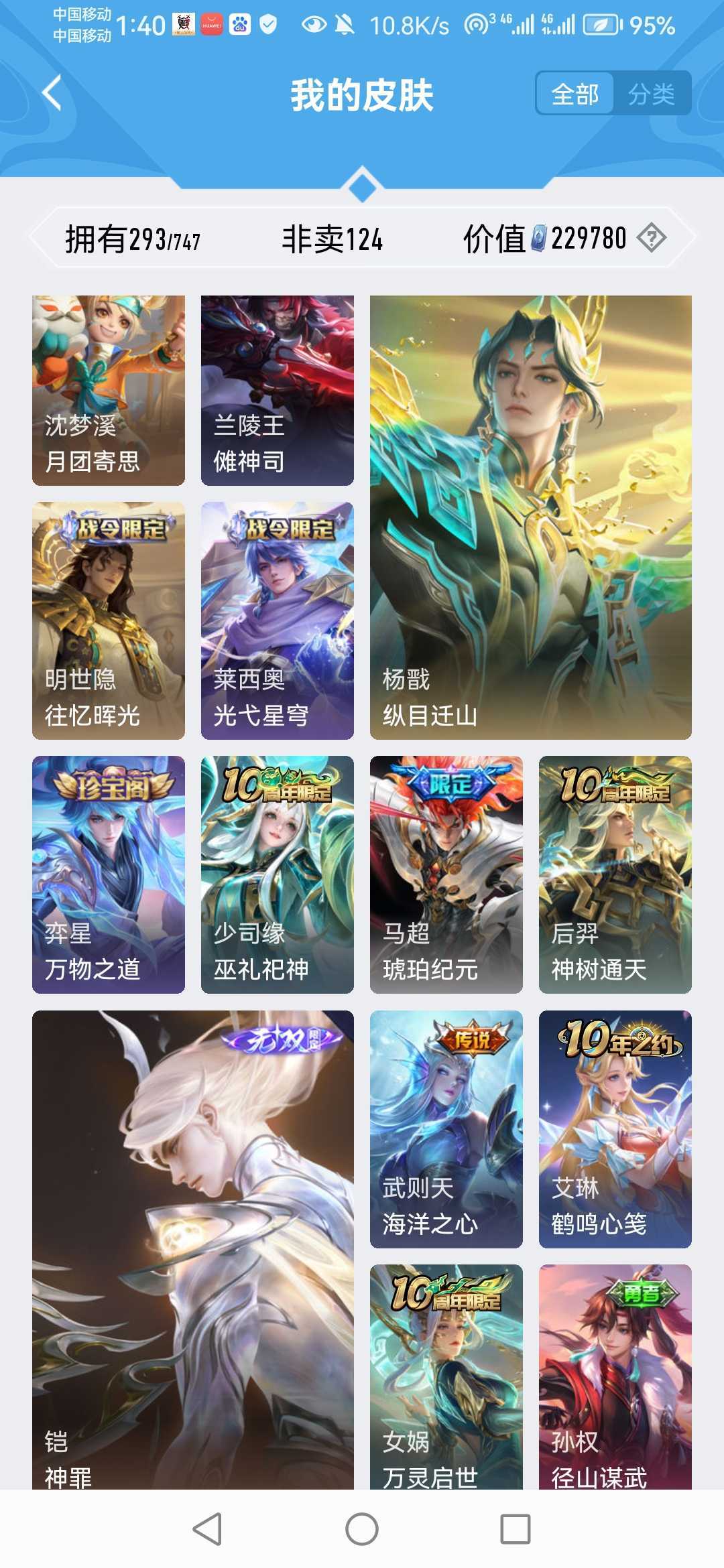 凯无双♥纵目迁山♥马超琥珀♥万灵启世♥蛇年全套♥孙策珍品♥甄姬无双♥玄雷天君♥大圣娶亲