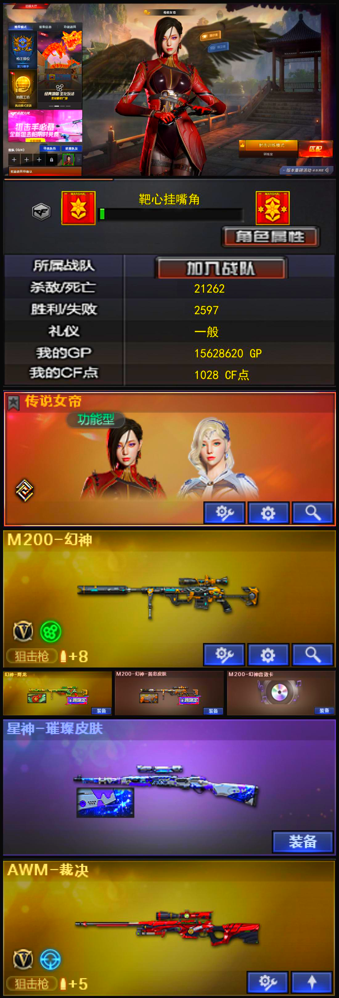 首页 > 租号大厅 > 穿越火线 > 电信区/浙江一区 > 【东.部】极品双全装女帝幻神三件套裁决五把高质量手枪朱雀沙漠玫瑰六盘六烈蝴蝶杜峰生化满配满雷套
