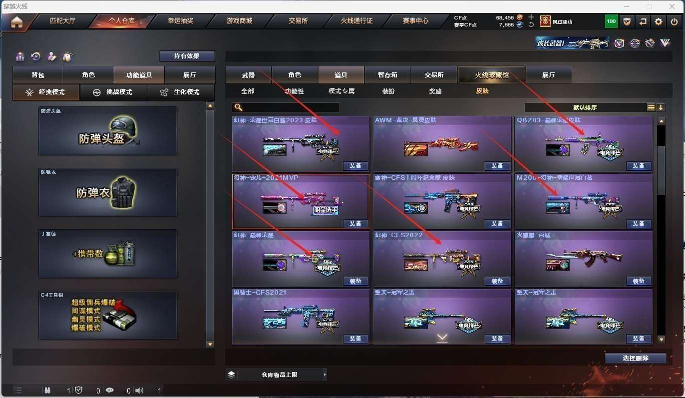 【幻神三件套!!!】【星神三件套!!!】【白虎三件套!!!】【金色蔷薇三件套!!!】【传说幽瞳】【m200幻神+m200幻神音效卡+宠儿皮肤+冠军之幻皮肤+荣耀世冠白鲨皮肤+荣耀世冠白鲨2023皮肤+巅峰荣耀皮肤+cfs2022皮肤+王者风神+传说破晓+usp雷暴+柯尔特荣耀世冠白鲨2023+柯尔特冠军之特+炽芒蝶刃+冠军之刃+传说影煞】【98k星神+98k星神音效卡+冠军之星皮肤+王者星霆】【m200竞技荣光套装+usp雷暴+电竞教官云悠悠】【传说破晓】【6盘龙+6烈龙+3炼狱+斯泰尔蝴蝶+死亡之眼】【6黑骑士】【白虎+白虎音效卡+冠军之虎皮肤+热带奇洋皮肤+王者白虎】【qbz03金色蔷薇+qbz03金色蔷薇音效卡+荣耀世冠白鲨皮肤+巅峰荣耀皮肤+热带奇洋皮肤+呛娘阿敏皮肤+王者芳薇+芭蕾特金色蔷薇】【金蚀】【云龙套装】【雷暴套装】【幻灵套装】【雷神+雷神音效卡+宠儿皮肤+传奇n9皮肤+荣耀之魄皮肤+巅峰荣耀皮肤+cfpls18冠军皮肤】【火麒麟+火麒麟音效卡+冠军之心皮肤+传奇石头横秒之巅皮肤】【毁灭+毁灭音效卡+荣耀之怒皮肤】【黑骑士+黑骑士音效卡+冠军之势皮肤+s4冠军典藏皮肤】【黑龙+冠军之武皮肤】【极光+极光音效卡】【王者之势 王者风势 王者芳薇 王者之怒 王者之光 王者之力 王者之决 王者雷怒 王者之幻 王者之烈 王者之心 王者冰魄 王者火魄 王者龙血 王者之戮 王者之鲨 王者凤吟】【无影 无影神兵利器 9a91烈火 玫瑰精灵 火麒麟 死神 千变 黑龙 雷神 武圣 黑骑士 超新星 青龙 朱雀 玄武 机械迷城 芭蕾特朱雀 天罚 黑武士锦绣游龙 超新星热带奇洋 凌龙-ⅰ 猩红传说 战士 身先士卒 常胜将军 毁灭 极光 天龙 裁决】——【传说破晓 usp雷暴 沙鹰修罗 沙鹰天神 柯尔特荣耀世冠白鲨2023 柯尔特冠军之特 glock18武圣 cop幻灵 cop云龙】——【炽芒蝶刃 屠龙 幻灵之锋 云龙扇 龙啸热带奇洋 王者之击 王者之刺】——【雷暴投掷武器套装 云龙投掷武器套装 幻灵投掷武器套装 竞技荣光投掷武器套装】【热门武器/小人呛】【mk5炽火炎龙 马呛 芭蕾特零水下丽影 斯泰尔蝴蝶 死亡之眼 cop旗袍 cop白鲨 雷神小红 雷神精英刀锋 火麒麟灵狐 毁灭孙三炮 天龙曼陀罗】【角色】【四防传说影煞】【(四防)电竞教官云悠悠 华 荒漠琉璃 晴雅 影豹 雨墨 月兔特工 王者葵貂蝉 王者瞳闭月羞花 王者魅影 王者葵惊若翩鸿 王者潘多拉 王者沙漠玫瑰 五号兵器赛博朋克】【葵 零 樱 魅影】;USP-雷暴,柯尔特-荣耀世冠白鲨2023,柯尔特-冠军之特,炽芒蝶刃,Knife-冠军之刃,传说影煞,电竞教官-云悠悠,