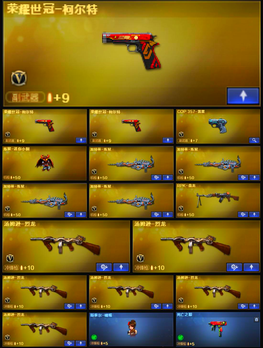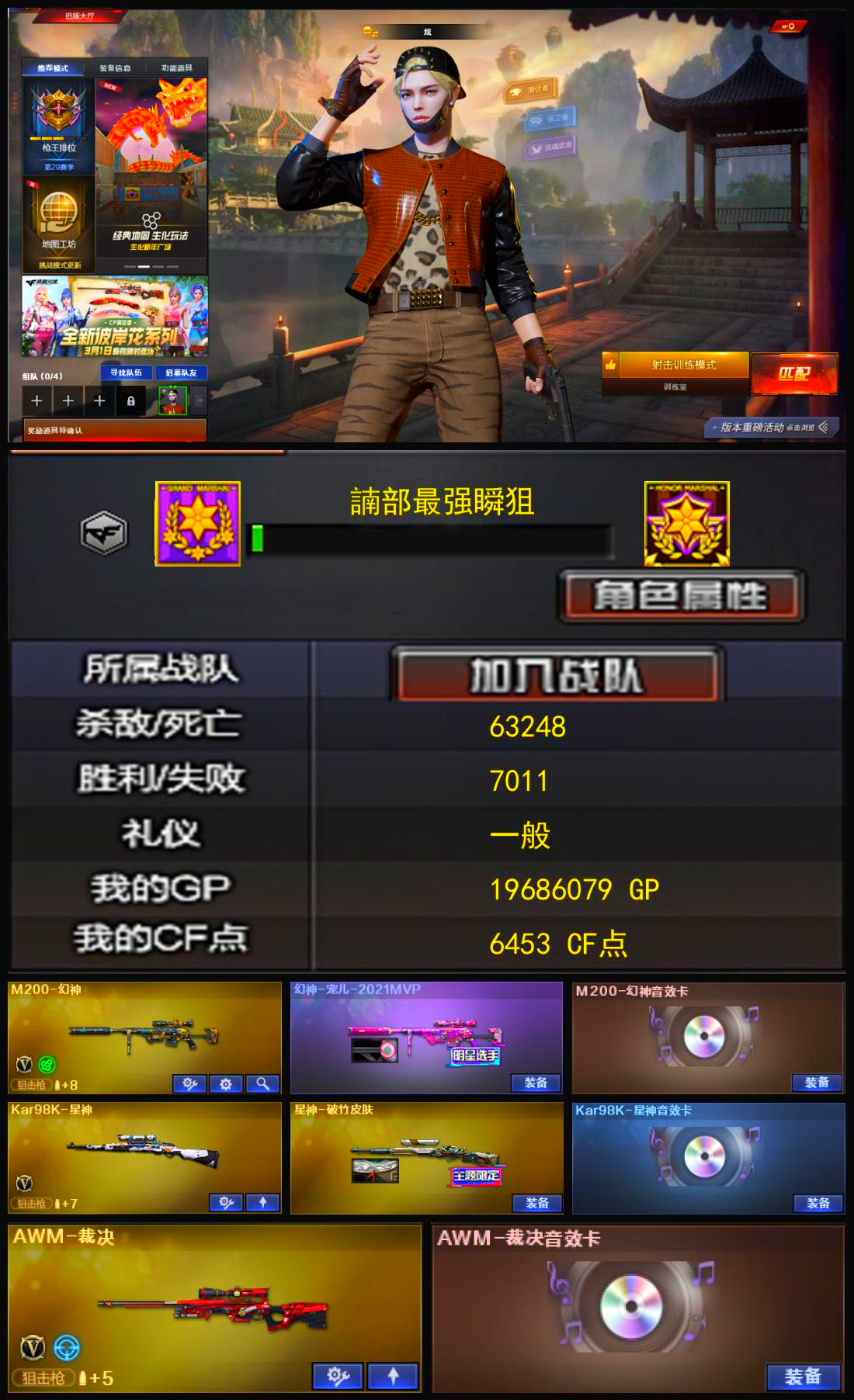 双全天花板幻神宠儿三件套星神三件套裁决带卡4把高质量手枪六烈蝴蝶4炼狱1盘龙生化满配主流三件套;荣耀世冠-柯尔特,RPK-盘龙,M200-幻神,Scar Light-白虎,Kar98K-星神,