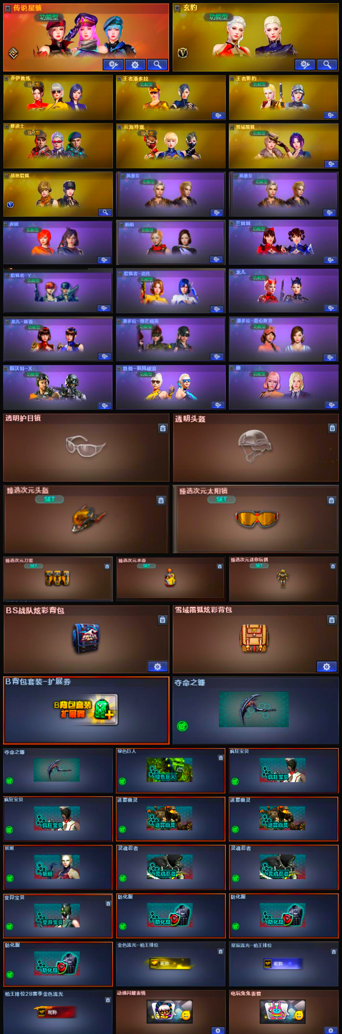 传说星骇圣谕幻神三件套王者星神裁决巅峰三件套白虎白鲨qbz拼搏玄豹套王者玄武觉醒主流三件套;