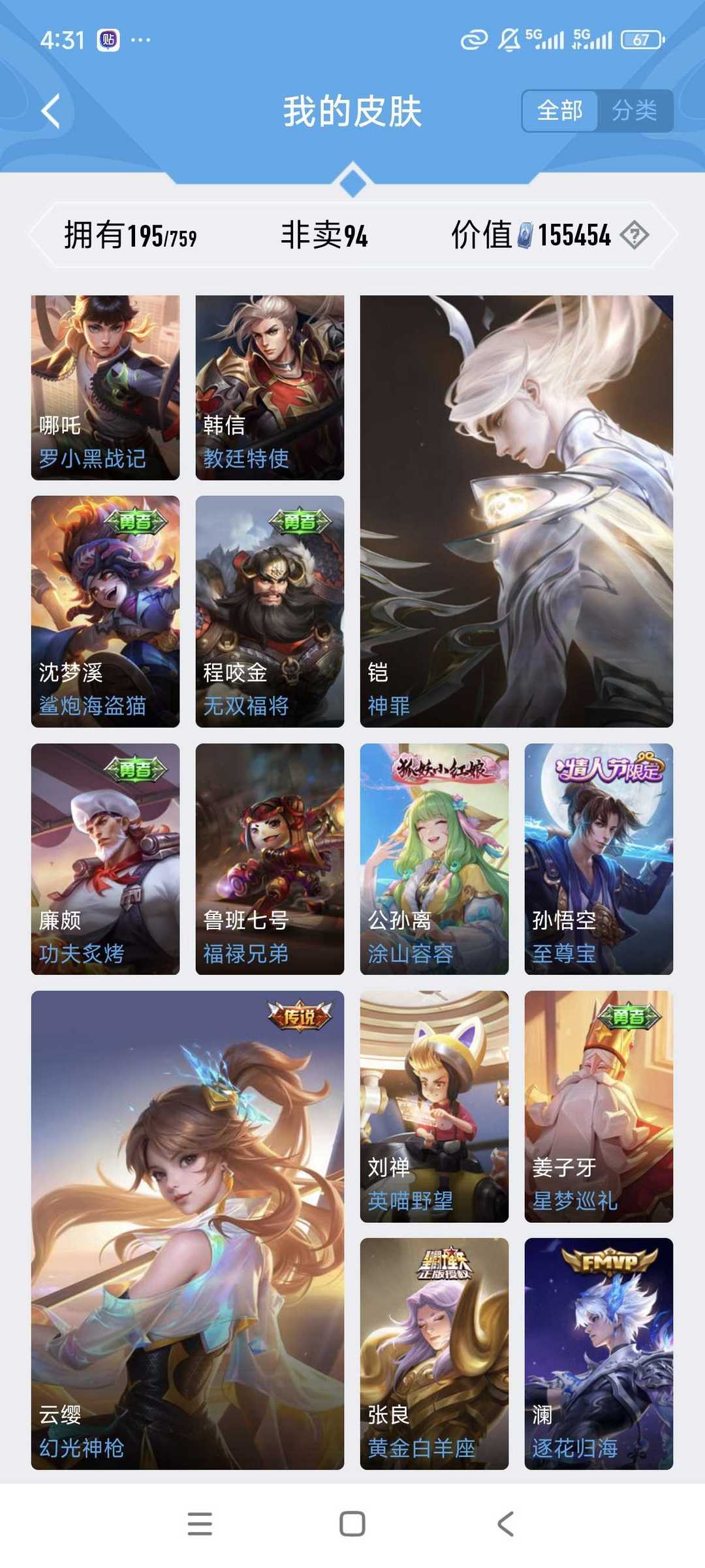 v10、12典藏520皮、马超无双飞将、韩信典藏、马可深海之熄、瑶珍品传说大耳狗之梦、青丘·九尾、枫霜尽、绯月行、前尘镜、至尊宝、天魔缭乱