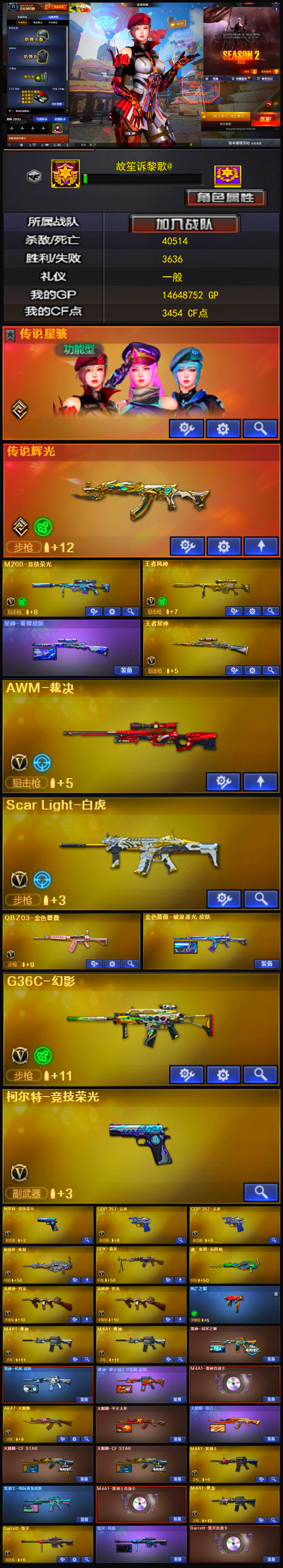 极品账号传说星骇辉光♥竞技荣光套♥星神裁决白虎♥qbz带皮G36幻影♥4把高质量手枪♥满雷套;