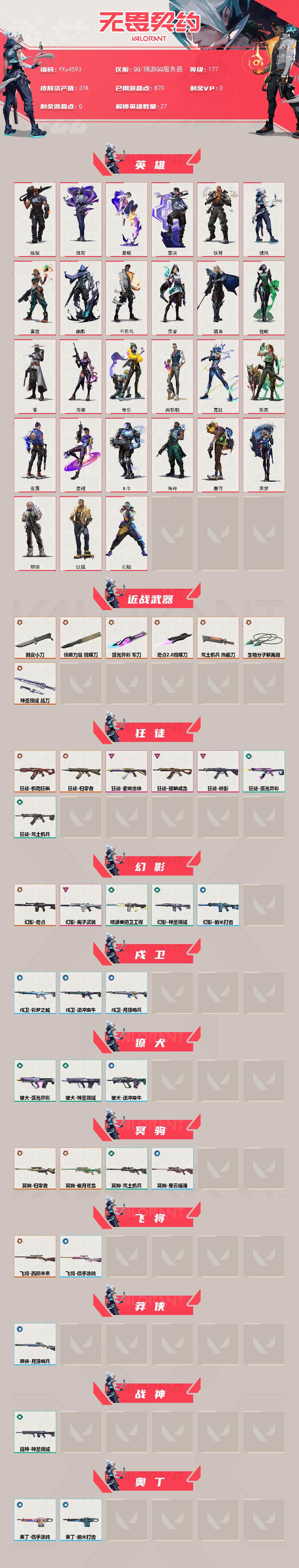 冻结三分钟内解除,短信通知重新上即可!喜欢收藏不迷路、游戏异常进小黑屋、时间不够请提前续租或者不要开局 【英雄】:幻棱,炼狱,维斯,暮蝶,钛狐,壹决,铁臂,捷风,雷兹,幽影,不死鸟,贤者,猎枭,蝰蛇,零,芮娜,奇乐,尚勃勒,霓虹,斯凯,夜露,星礈,K/O,海神,盖可,黑梦,钢锁 【近战武器】:近战武器-侦察力量 蝴蝶刀,近战武器-剥皮小刀,近战武器-奇点//2.0 蝴蝶刀,近战武器-弧光异彩 军刀,近战武器-荒土机兵 热能刀,近战武器-生物分子解离器,近战武器-神圣领域 战刀 【狂徒】:狂徒-归零者,狂徒-机动狂飙,狂徒-掠影,狂徒-耀鳞威龙,狂徒-紫阙金琅,狂徒-弧光异彩,狂徒-荒土机 【幻影】:幻影-奇点,幻影-离子武器,幻影-噬源兽防卫工程,幻影-神圣领域,幻影-纳米击 【戍卫】:戍卫-彩梦之城,戍卫-逆冲蛮牛,戍卫-月球哨兵 【獠犬】:獠犬-弧光异彩,獠犬-神圣领域,獠犬-逆冲蛮牛 【冥驹】:冥驹-归零者,冥驹-偃月苍龙,冥驹-荒土机兵,冥驹-星云暗涌 【飞将】:飞将-西部未来,飞将-信手涂鸦 【莽侠】:莽侠-月球哨兵 【战神】:战神-神圣领域 【奥丁】:奥丁-纳米击,奥丁-信手涂鸦 【判官】:判官-纳米打x 【雄鹿】:雄鹿-彩梦之城,雄鹿-逆冲蛮牛,雄鹿-月球哨兵 【骇灵】:骇灵-荒土机兵,骇灵-信手涂鸦,骇灵-星云暗涌 【蜂刺】:蜂刺-弧光异彩,蜂刺-星云暗涌 【标配】:标配-荒土机兵,标配-彩梦之城 【VCT手枪】:标配-VCT25 x BLG 【正义】:正义-西部未来,正义-超限闪存,正义-沙尘幻旅,正义-纳米击,正义-月球哨兵 【鬼魅】:鬼魅-耀鳞威龙,鬼魅-光导纤维,鬼魅-信手涂鸦,鬼魅-星云暗涌 【狂怒】:狂怒-神圣领域,狂怒-火线狂怒,狂怒-逆冲蛮牛 【短炮】:短炮-弧光异彩 【卡面】:终章:激斗汉堡 卡面,进入射程 卡面,分崩离析 卡面,纳米击 卡面,抑制技术 卡面,激斗汉堡 卡面,瓦娃雪糕 P2 卡面,从黄昏到黎明 卡面,荒土机兵 卡面,银弹猎手 卡面,逆冲蛮牛 卡面,《双城之战》拥抱 卡面,精灵大战 卡面,欢迎来到底城 卡面,南瓜盛典 卡面,修车达人 卡面,正义的化身 卡面,最高舞台 卡面,声感陷阱设计图 卡面,梦幻奶茶 卡面,无畏契约:尚勃勒 卡面,源能反应 卡面,零点嗅探设计图 卡面,沙雕爆能器 卡面,无畏契约GO!一卷:芮娜 卡面,清除名单 卡面,无畏契约GO!一卷:零 卡面,终章:同步耍酷 卡面,龍记 卡面,化茧成蝶 卡面,《双城之战》金克丝 卡面,完美调谐 卡面 ,暗枪 卡面,铁臂vs雷兹 卡面,钢锁vs盖可 卡面,别冒尖 卡面,夯实根基 卡面,"Luie" 卡面,热烈欢迎 卡面,铁臂设计图 卡面,代号红色 卡面,冰淇淋店 卡面,新兵报到 卡面,友军火力 卡面,V契约 卡面,无畏契约 卡面 【喷漆】:小小心意 喷漆,战“素”兔 喷漆,宇宙的指引 喷漆,请求重启 喷漆,逆冲蛮牛 喷漆,纳米击 喷漆,鼻尖上的蝴蝶 喷漆,简笔画黯兽 喷漆,独守蝰腹 喷漆,他们将落荒而逃 喷漆,通缉:战术企 喷漆,荒土机兵 喷漆,别挡我吃球! 喷漆,嗨宝南瓜灯 喷漆,嘭! 喷漆,都算到了 喷漆,控场勿近 喷漆,小丑猫 喷漆,熊抱 喷漆,超级粉丝 喷漆,捷风差距 喷漆,惊声尖叫 喷漆,2021冠军巡回赛花火 喷漆,拼一枪 喷漆,致命优雅 喷漆,我的刀呢? 喷漆,情绪控制 喷漆,新潮流 喷漆,双击点赞 喷漆,买装还是存钱 喷漆,醒狮贺春 喷漆,无畏契约GO!一卷:芮娜 喷漆,红鳞 喷漆,无畏契约GO!一卷:零 喷漆,无畏契约GO!一卷:捷风 喷漆,无畏契约GO!第卷:贤者 喷漆,暴走萝莉 喷漆,松叶 喷漆,无畏契约GO!一卷:奇乐 喷漆,旅行小熊 喷漆,蕊形灯 喷漆,放下武器 喷漆,凌空惊吓 喷漆,老铁困了 喷漆,口袋贤者 喷漆,胜利属于无畏契约 喷漆,GLHF 喷漆,无畏契约 喷漆 【挂饰】:V25第三幕:超凡 挂饰,终章:猫猫木乃伊 挂饰,荒土机兵 挂饰,悠闲鸡块 挂饰,猫猫木乃伊 挂饰,水壶 挂饰,纳米击 挂饰,逆冲蛮牛 挂饰,可爱糖糖 挂饰,伞绳 挂饰,《双城之战》小蛋糕 挂饰,第九季//第三幕 纪念币 挂饰,工具腰带 挂饰,无畏契约GO!一卷 芮娜 挂饰,无畏契约GO!一卷 零 挂饰,鱼骨头 挂饰,熔岩灯 挂饰,第九季//第二幕 纪念币 挂饰,袖珍捷风 挂饰,迷你浓缩 挂饰,第九季//一幕 纪念币 挂饰,第八季:白银 挂饰,迷你机甲 挂饰,第八季//第三幕 纪念币 挂饰,第八季//第二幕 纪念币 挂饰,天外飞客 挂饰,好运福爪 挂饰,终章:晒出笑 挂饰,《双城之战》魄罗 挂饰,酷闪轮滑 挂饰,瞄这里 挂饰,第八季//一幕 纪念币 挂饰,终章:高音谱号 挂饰,彩糖面包 挂饰,冬日絮语 挂饰,海豹的认可 挂饰,第七季//第三幕 纪念币 挂饰,幸运中国结 挂饰,第七季//第二幕 纪念币 挂饰,无畏契约 纪念币 挂饰;剥皮小刀,掠影 狂徒,紫阙金琅 狂徒,西部未来 飞将,归零者 冥驹,西部未来 正义,