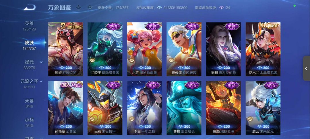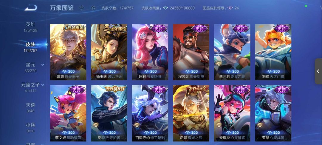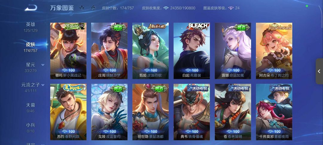 v10、524皮5水4无双、遇见神鼓、齐天大圣、白虎志、韩信荣耀典藏、72传说、愿照·九州拓、时之魔女、瑶无双、青丘、九尾、神器明辉仪
