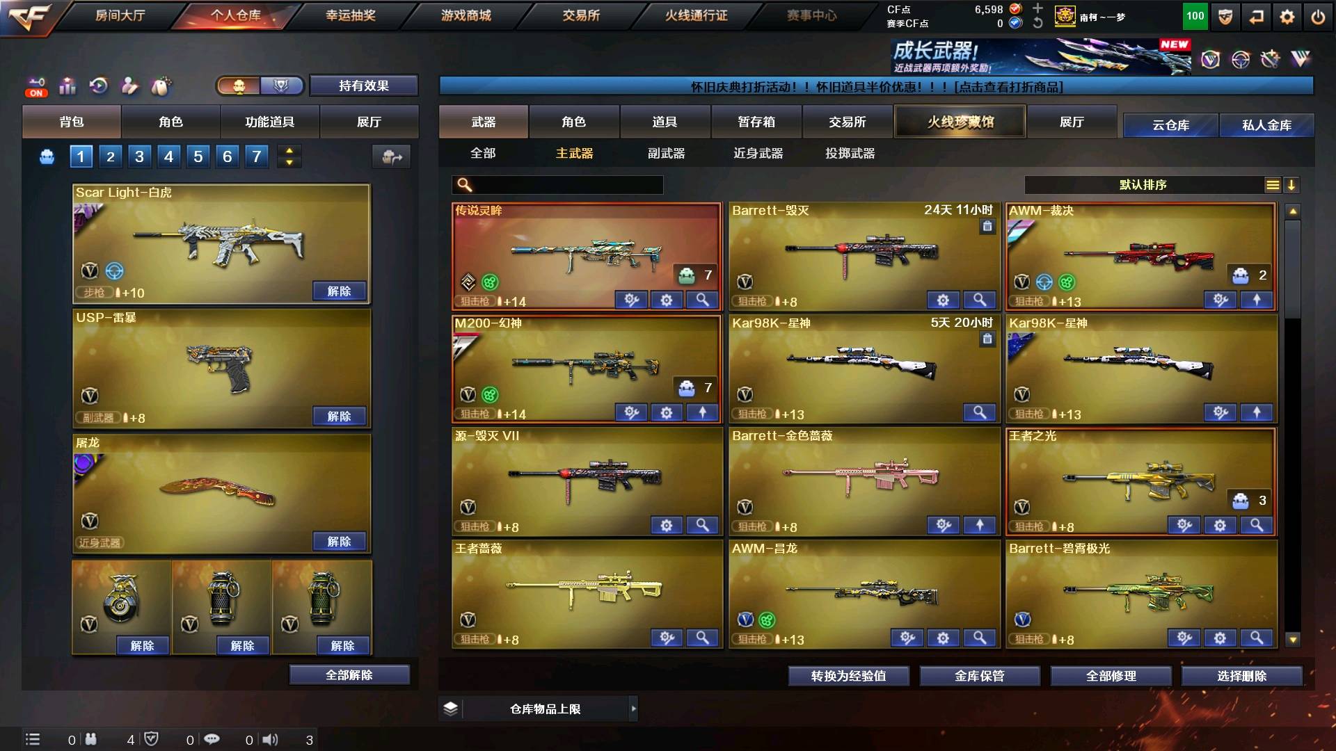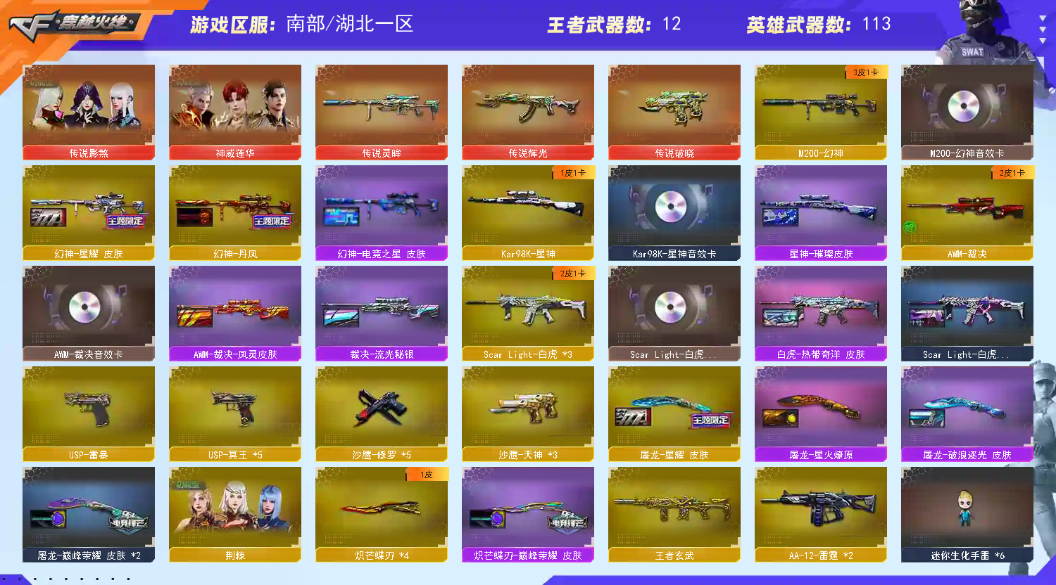 禁止开挂 导致封号必追责维权;USP-雷暴,炽芒蝶刃,传说影煞,M200-幻神,Scar Light-白虎,传说灵眸,Kar98K-星神,