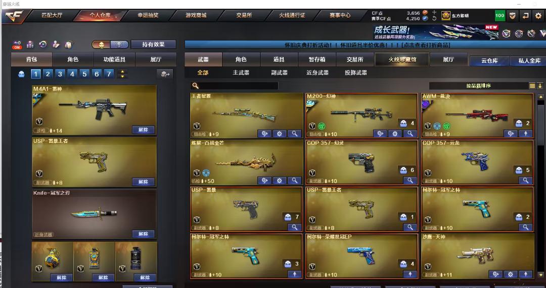 爆破神装,详情看图,就不一一描述了;USP-雷暴,USP-雷暴王者,柯尔特-冠军之特,Knife-冠军之刃,传说影煞,电竞教官-云悠悠,妮妮,