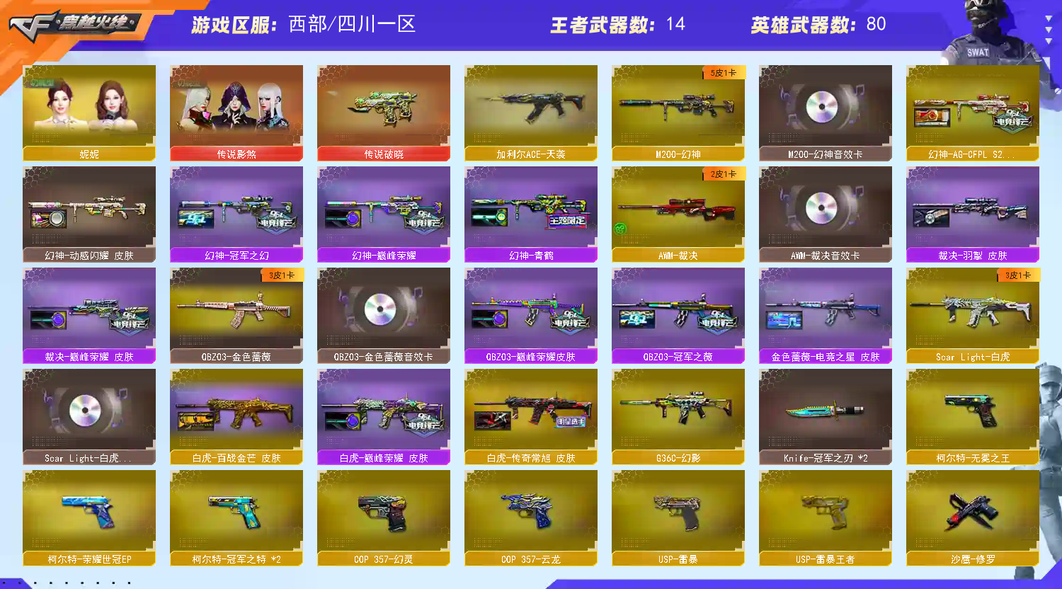 (可排位)幻神/天袭/白虎/幻影/qbz/裁决/雷神/毁灭/火麒麟3柯尔特2cop2雷暴四防角色×7