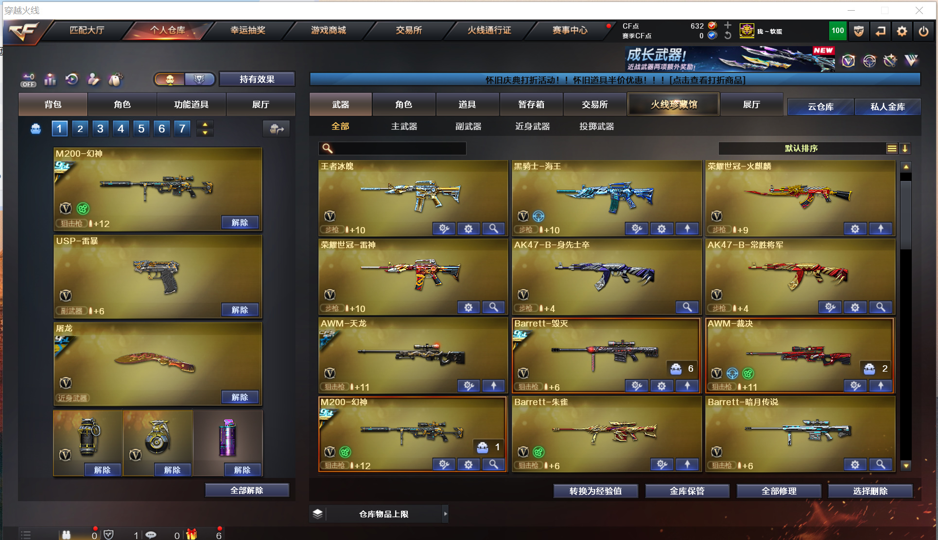 传说暗翼幻神冠军之幻usp雷暴白虎裁决生化6盘6烈炼狱雷神荣耀冠军之怒之心;USP-雷暴,荣耀世冠-柯尔特,电竞教官-云悠悠,RPK-盘龙,M200-幻神,Scar Light-白虎,传说暗裔,