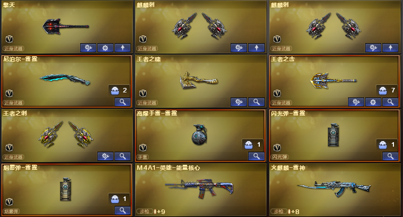 100V六烈龙/清道夫/QBZ蔷薇/朱雀/毁灭音效/黑骑音效+耀金/雷神星空/火麒麟CFS2017+轻羽AG/白鲨天龙/雷霆COP五件套/六修罗/十几把王者炫金