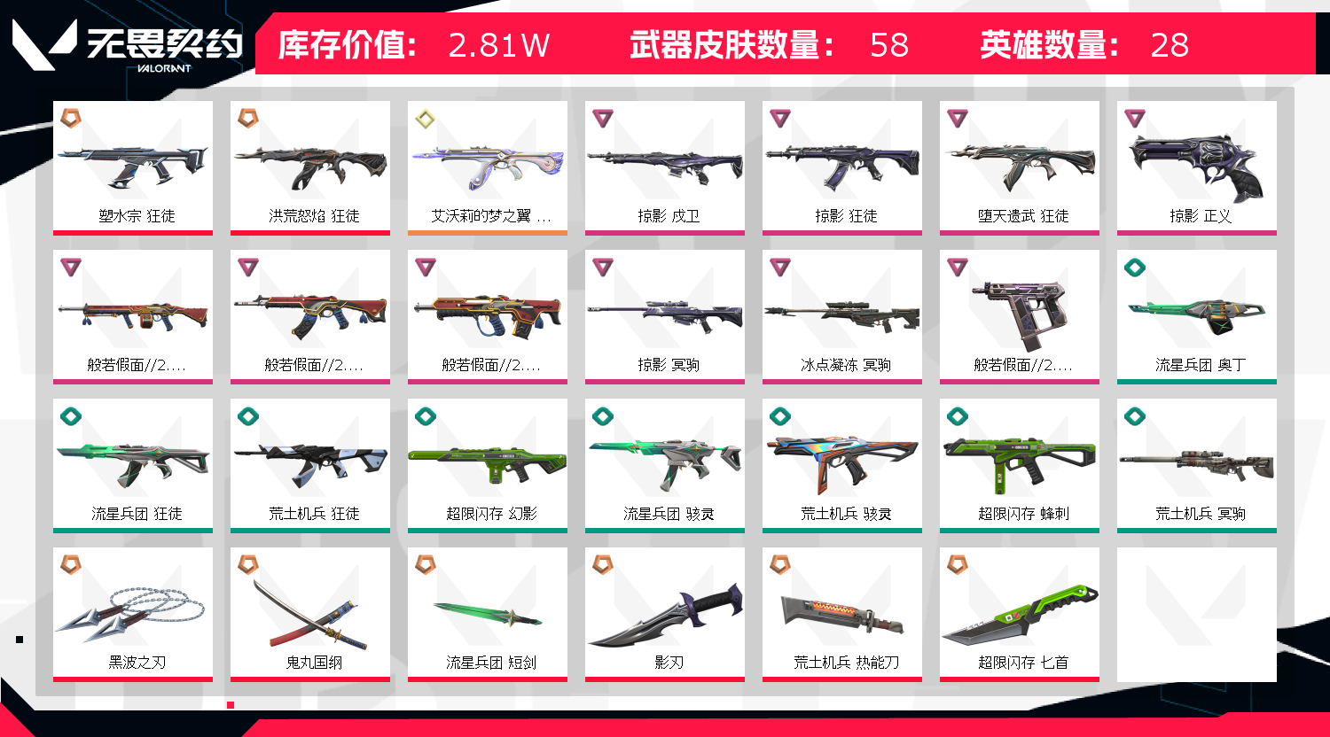 • 皮肤资产价值: 28110
