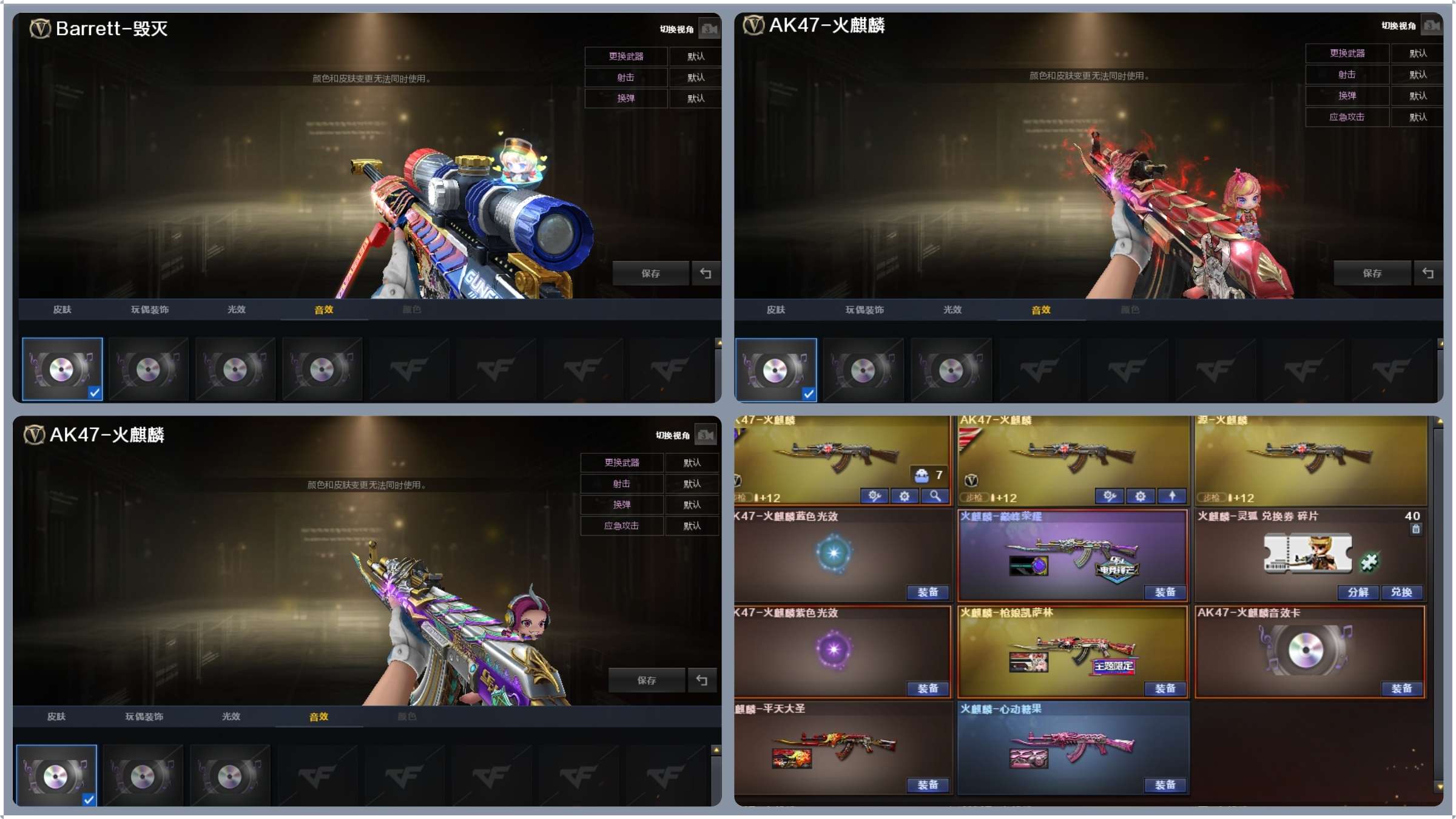 幻神音效+荣耀世冠白鲨/QBZ枪娘阿敏+荣耀白鲨/毁灭音效+枪娘格雷+百城浙江/火麒麟音效+枪娘凯萨林+巅峰荣耀/裁决音效+巅峰荣耀/黑骑音效+电玩青兔破界