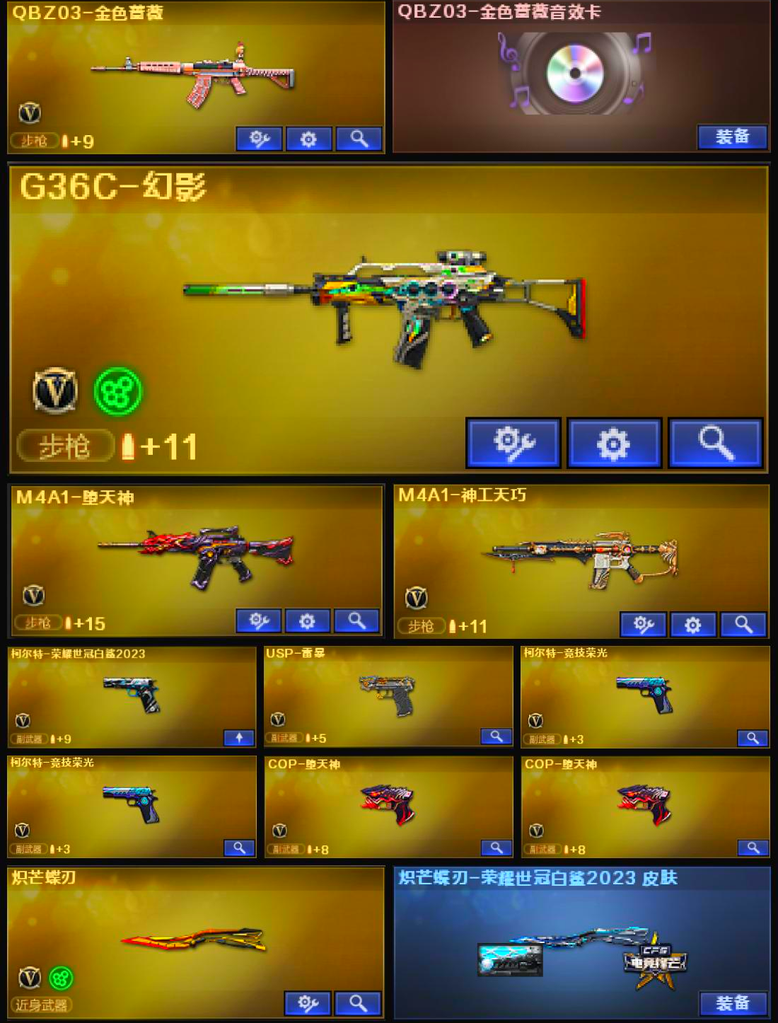 氪金天花板爱丽莎幽瞳幻神三件套裁决三件套星神三件套G36幻影满质量手枪蝴蝶刀六盘六烈隼;USP-雷暴,柯尔特-荣耀世冠白鲨2023,传说幽冥,炽芒蝶刃,隼,电竞教官-云悠悠,晴雅,