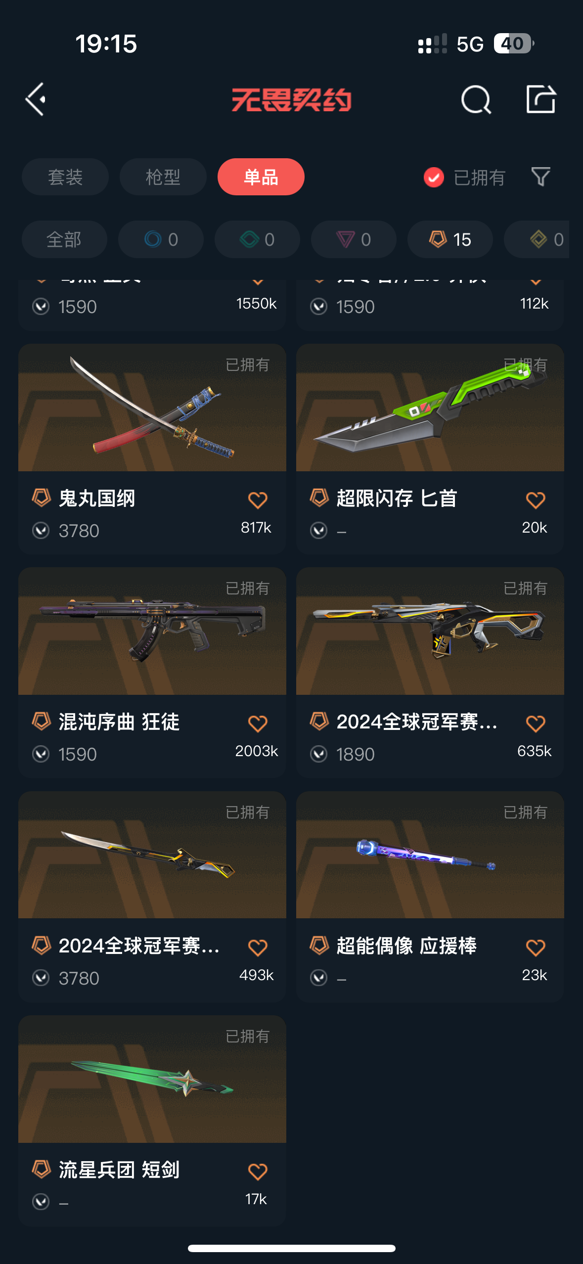 • 传奇数量: 15
