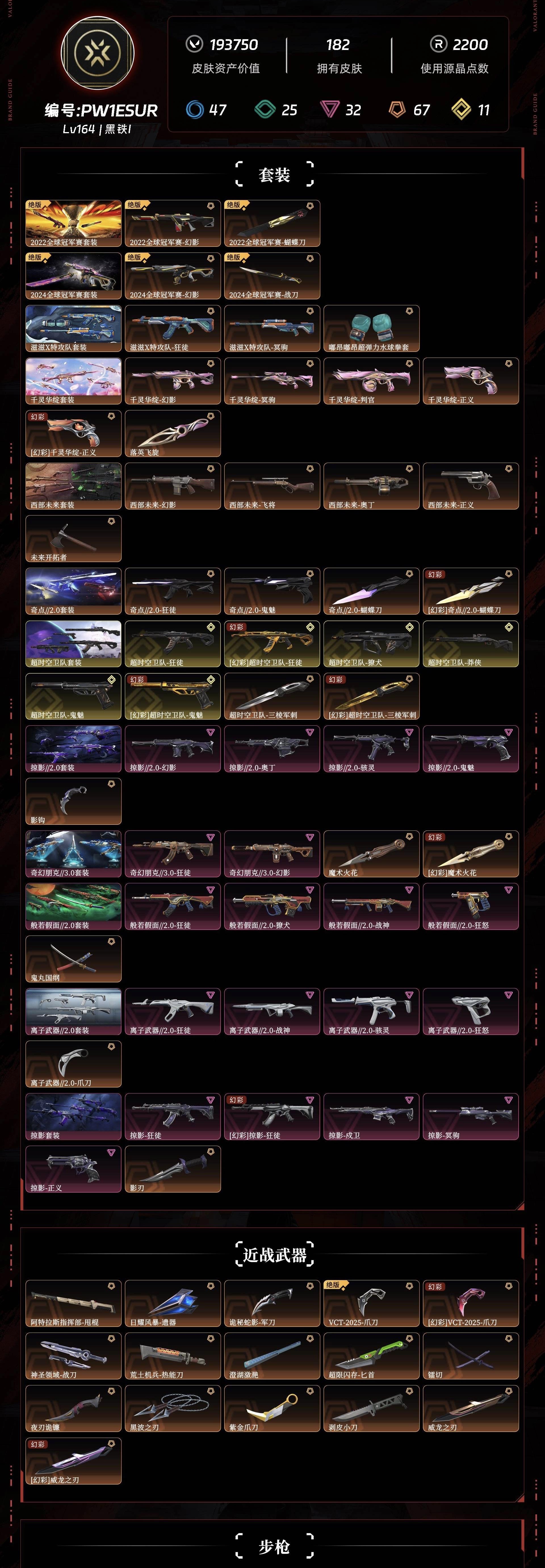 • 武器皮肤数量: 182