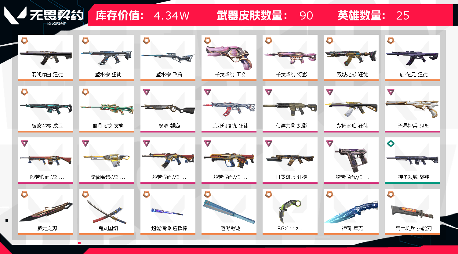 首页 > 租号大厅 > 无畏契约-wegame > wegame/wegame > 创纪元 盖亚 紫金 塑水 般若 混沌 爆爆 日冕狂徒 侦查莲花幻影 威龙太刀显卡爪刀苍龙狙塑水飞将