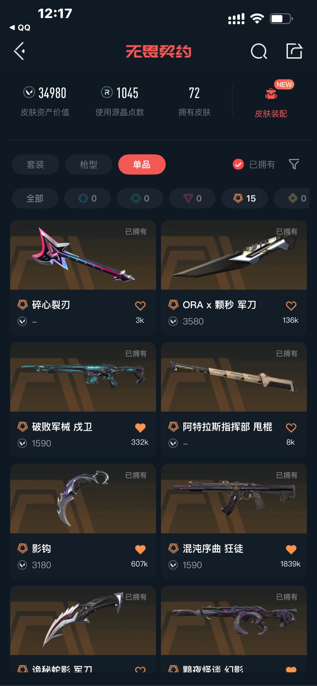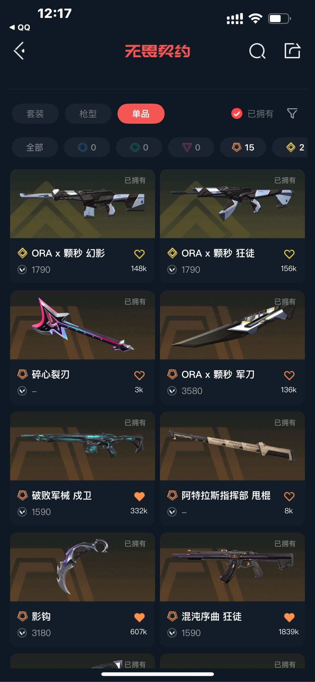首页 > 租号大厅 > 无畏契约-wegame > wegame/wegame > 神中神⭐颗秒套⭐纪元套⭐镭切⭐掠影2.0套⭐VCT标配⭐混沌狂徒⭐侦查幻影⭐堕天冥狗碎心裂刃⭐诡秘刀