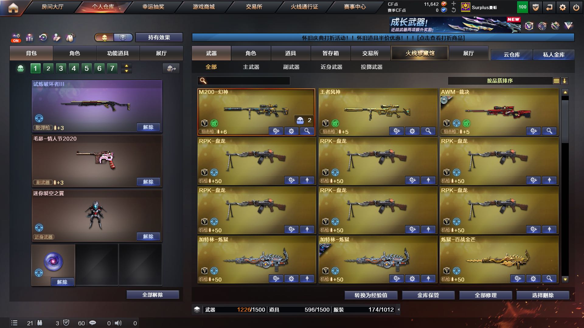 6盘6裂蝴蝶 加特林 幻影 幻神 柯尔特百战金芒✨生化背包 可排位 幻神 王者风神;RPK-盘龙,QBZ03-金色蔷薇,G36C-幻影,M200-幻神,