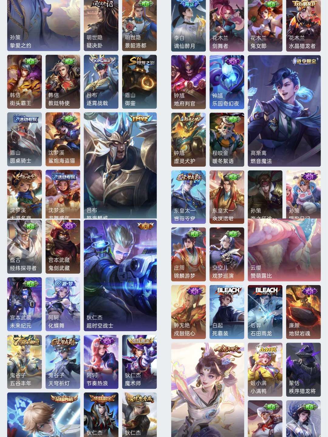 V10、543皮14水、吕布典藏-千魇归渊、愿照·九州拓、愿照·众生和、怪盗基德、伽罗星传说红枫、瑶典藏拾光映像、冥王哈迪斯、、龙年限定、齐天大圣