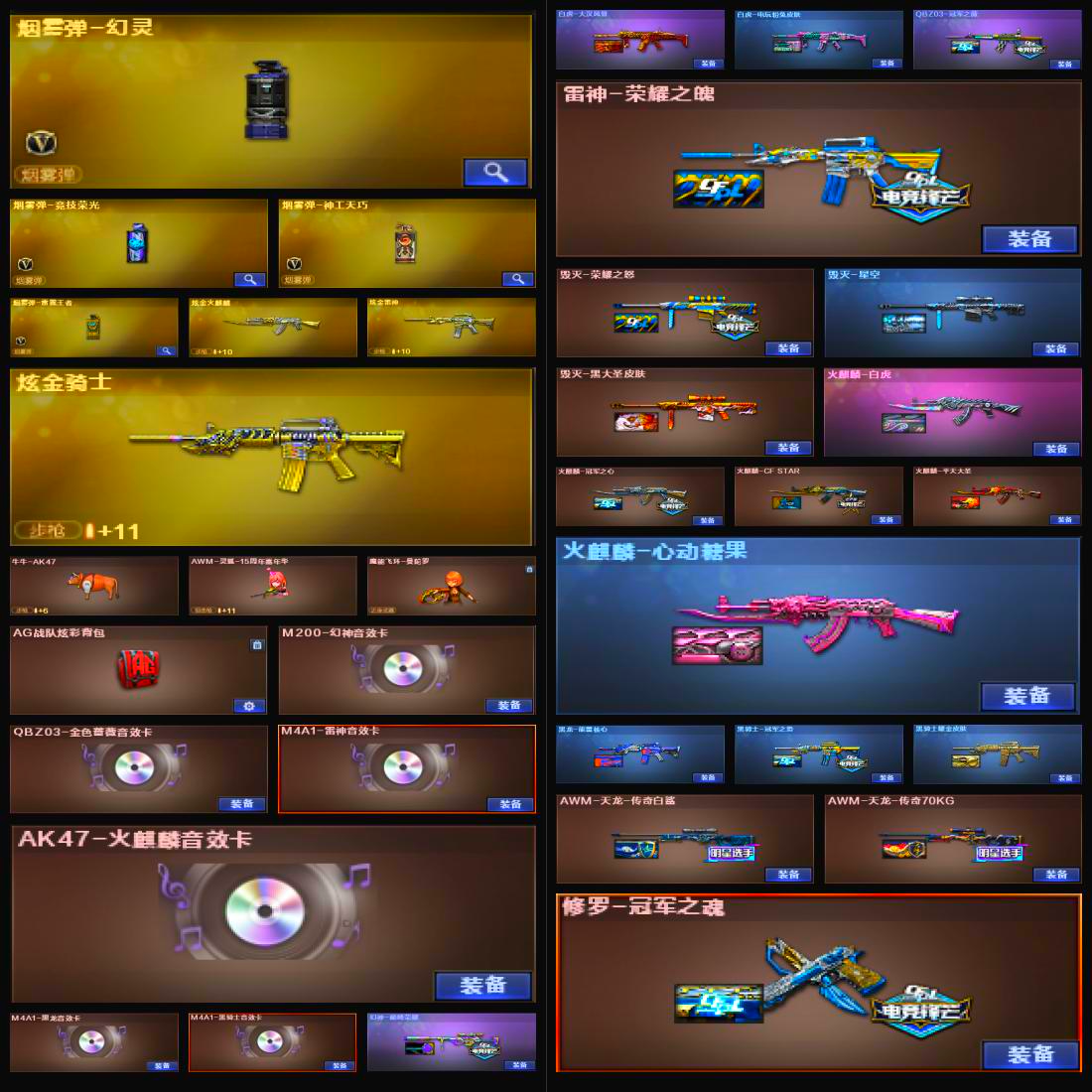 【福建一区】【V武器数54】【幻神三件套】【幻神1皮】【金色蔷薇三件套】【神工天巧套装X1套】【竞技荣光套装X1套】【夜魔套装X1套】【幻灵套装X2套】【M200-幻神】【幻神-巅峰荣耀】【M200-幻神音效卡】【王者幻神-觉醒版】【Kar98K-星神】【AWM-裁决】【Scar Light-白虎】【白虎-大汉风骨】【白虎-电玩粉兔皮肤】【白虎-电玩蓝兔】【QBZ03-金色蔷薇】【QBZ03-冠军之薇】【QBZ03-金色蔷薇音效卡】【QBZ-03-王者蔷薇-觉醒版】【M4A1-雷霆王者-觉醒版】【M4A1-青龙】【柯尔特-冠军之特】【荣耀世冠-柯尔特】【USP-神工天巧】【COP-堕天神】【Knife-冠军之刃】【M4A1-雷神】【雷神-荣耀之魄】【M4A1-雷神音效卡】【AK47-火麒麟】【火麒麟-白虎】【火麒麟-冠军之心】【火麒麟-平天大圣】【火麒麟-心动糖果】【火麒麟-CFSTAR】【AK47-火麒麟音效卡】【M4A1-黑骑士】【黑骑士-冠军之势】【黑骑士耀金皮肤】【M4A1-黑骑士音效卡】【M4A1-黑龙】【黑龙-能量核心】【M4A1-黑龙音效卡】【Barrett-毁灭】【毁灭-荣耀之怒】【毁灭-星空】【毁灭-黑大圣皮肤】;荣耀世冠-柯尔特,柯尔特-冠军之特,Knife-冠军之刃,QBZ03-金色蔷薇,M200-幻神,Scar Light-白虎,Kar98K-星神,