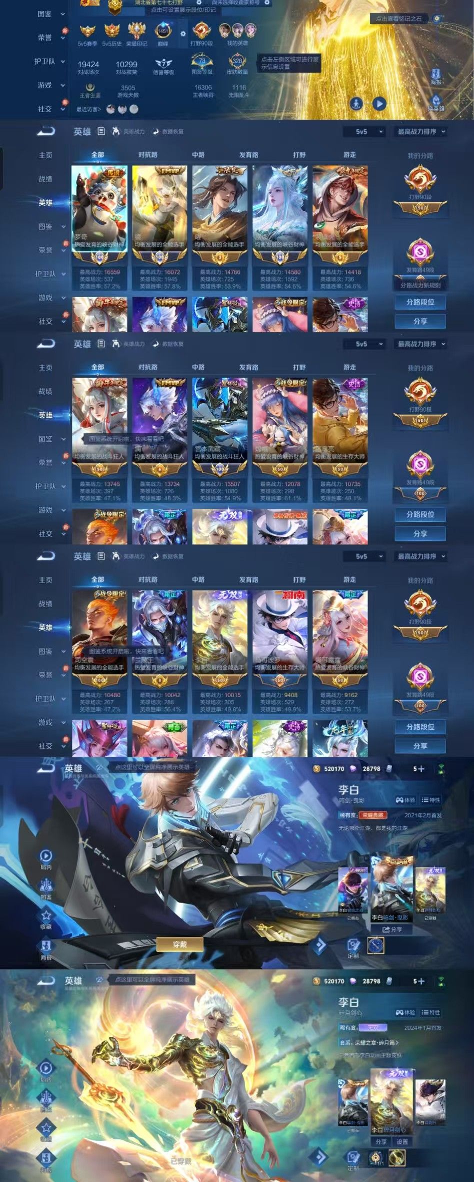 90段打野✨国服镜国服露娜✨国服梦奇国服宫本✨万战曜万战老虎✨万战公孙离万战澜万战嫦娥✨13万战英雄