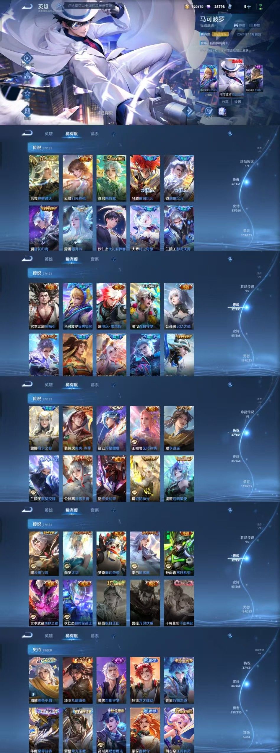 v10、12典藏520皮、马超无双飞将、韩信典藏、马可深海之熄、瑶珍品传说大耳狗之梦、青丘·九尾、枫霜尽、绯月行、前尘镜、至尊宝、天魔缭乱
