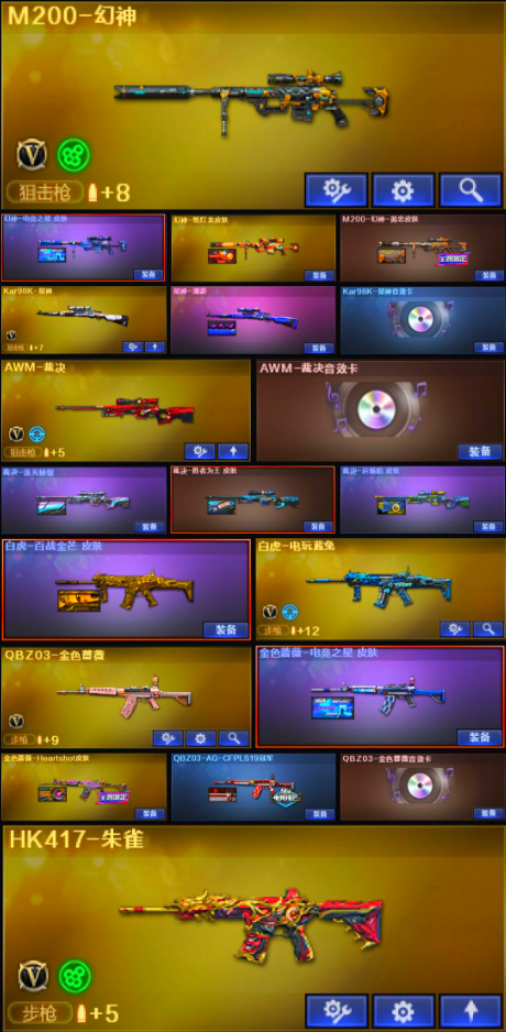 【南.部】天花板♥幻神电竞皮肤♥星神三件套♥裁决流光三件套♥qbz三件套白虎电玩♥蝴蝶刀主流武器带皮;炽芒蝶刃,QBZ03-金色蔷薇,M200-幻神,Kar98K-星神,
