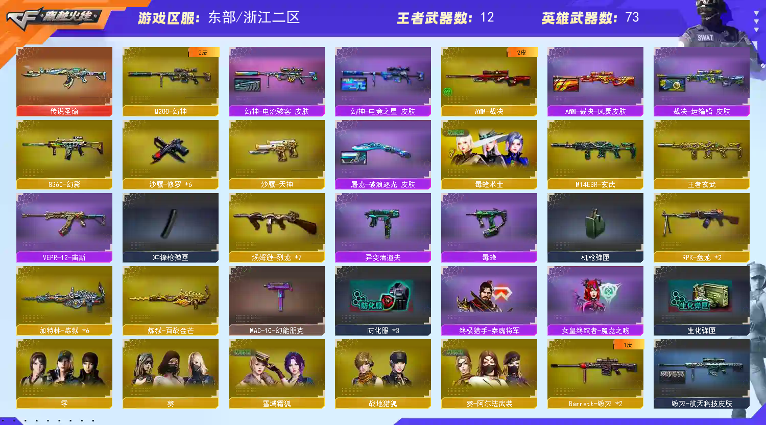 传说圣域,7烈龙,7炼狱,两盘龙,有幻神,g36c,毒蝰术士,白虎电玩蓝兔,双玄武,毒蜂,斯太尔,可排位,;RPK-盘龙,G36C-幻影,M200-幻神,传说圣谕,