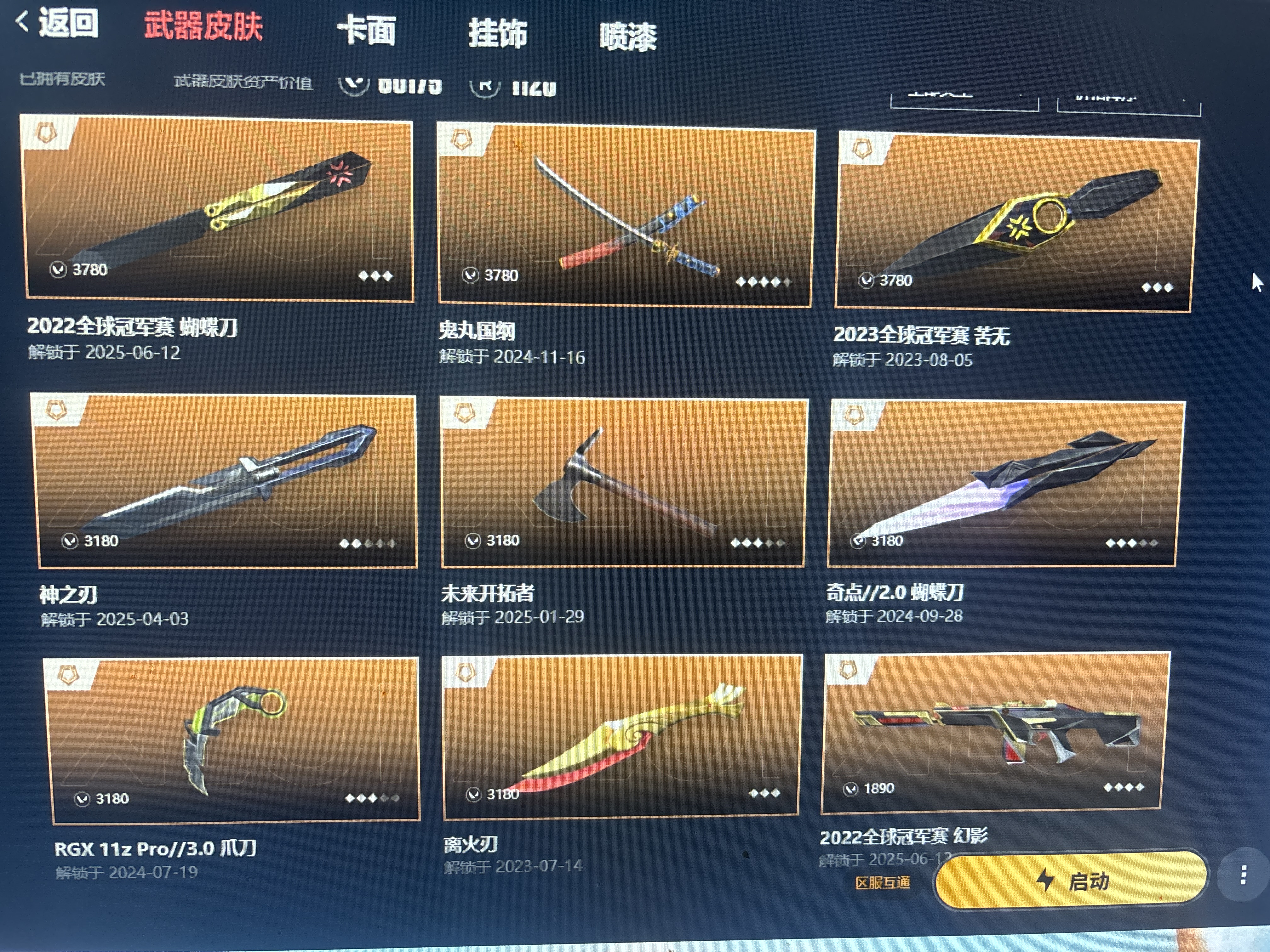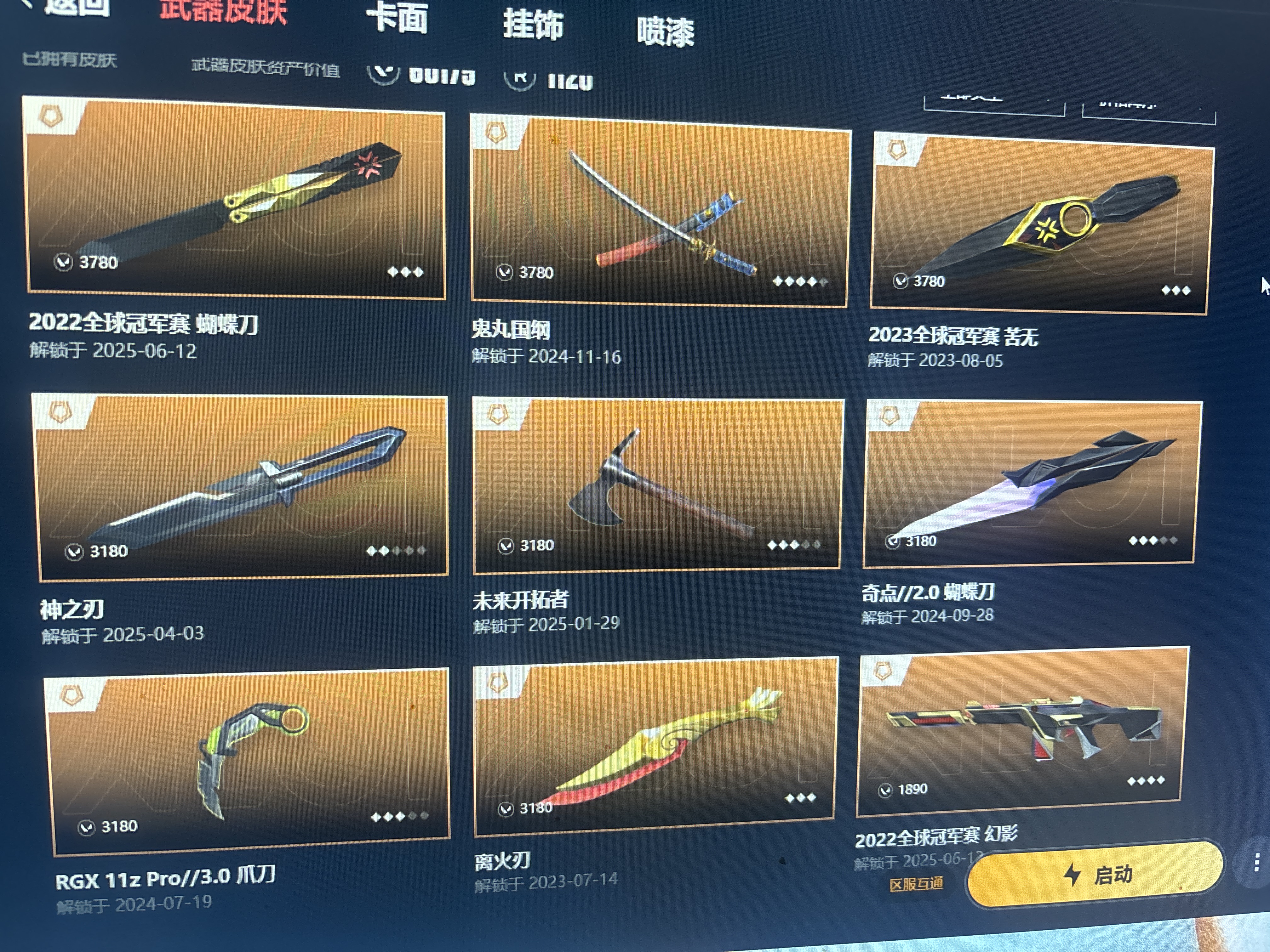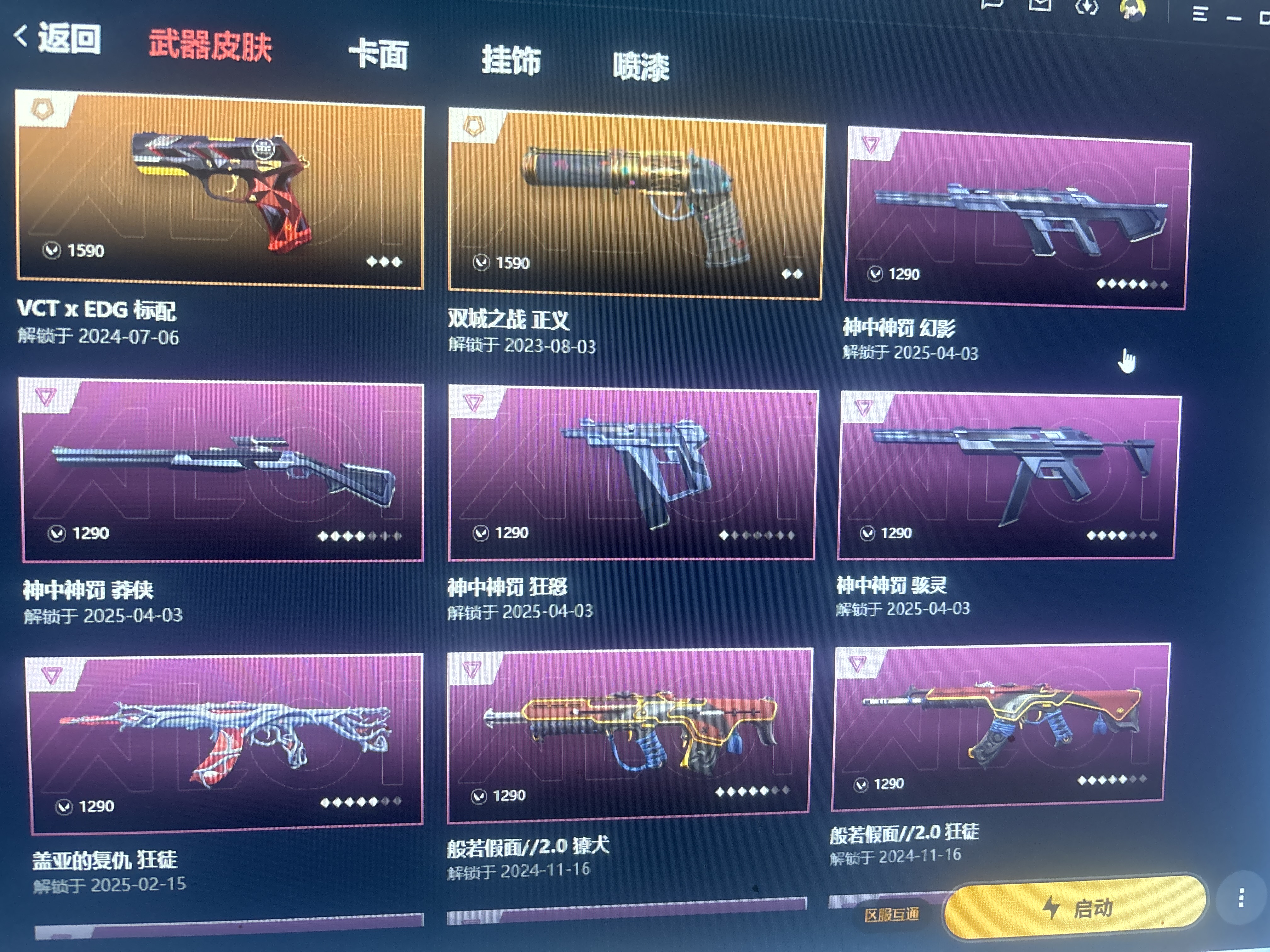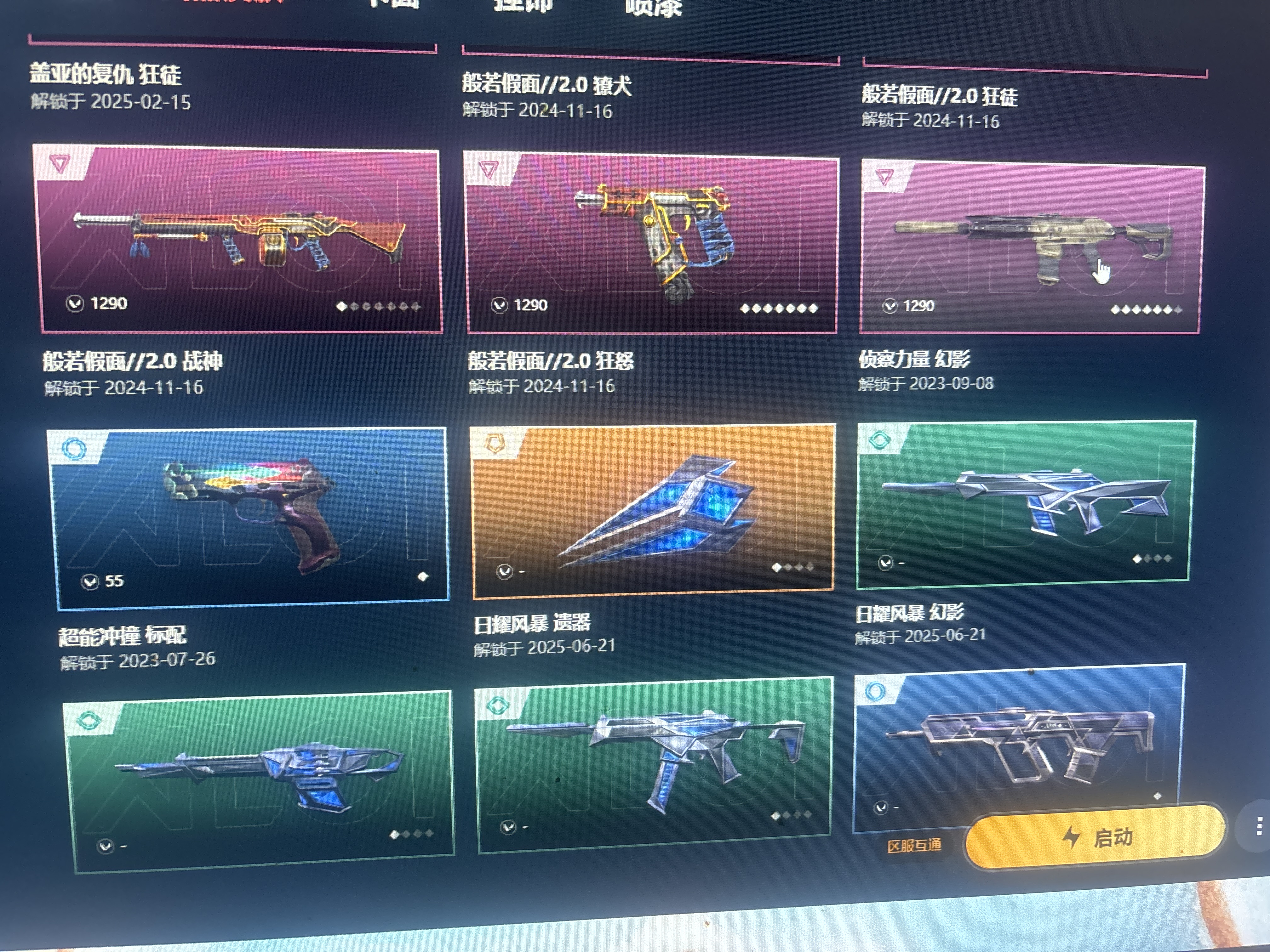限定多 实用多 各种t0武器;西部未来 奥丁,离火刃,盖亚的复仇 狂徒,侦察力量 幻影,混沌序曲 狂徒,2023全球冠军赛 狂徒,2024全球冠军赛 幻影,