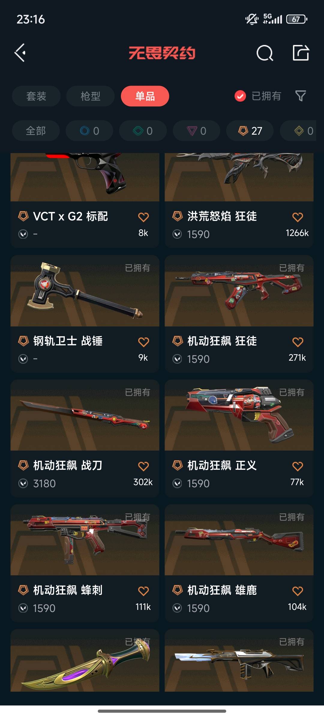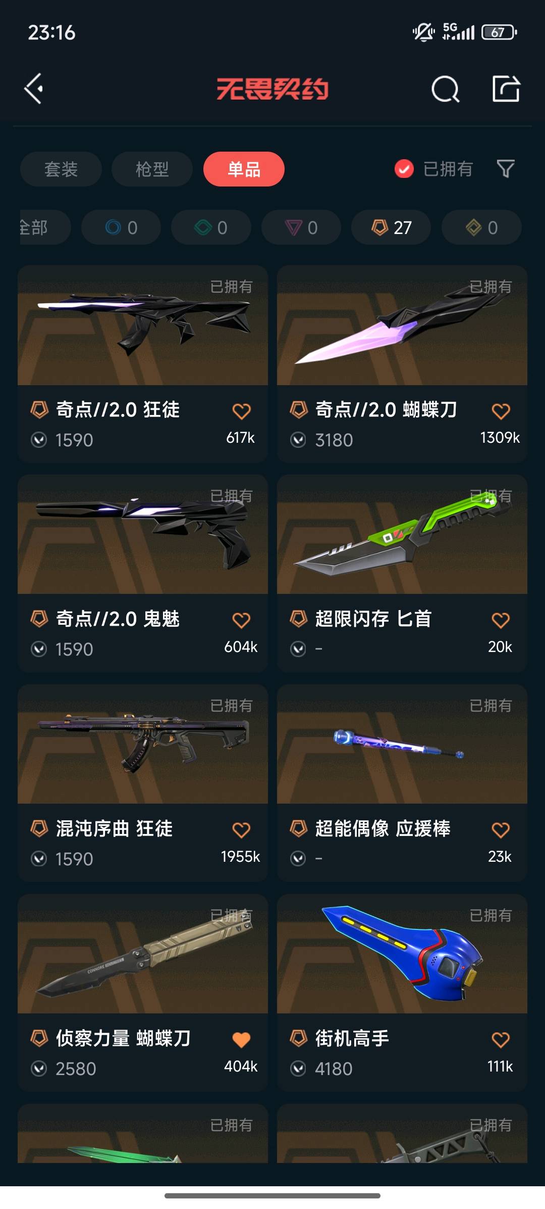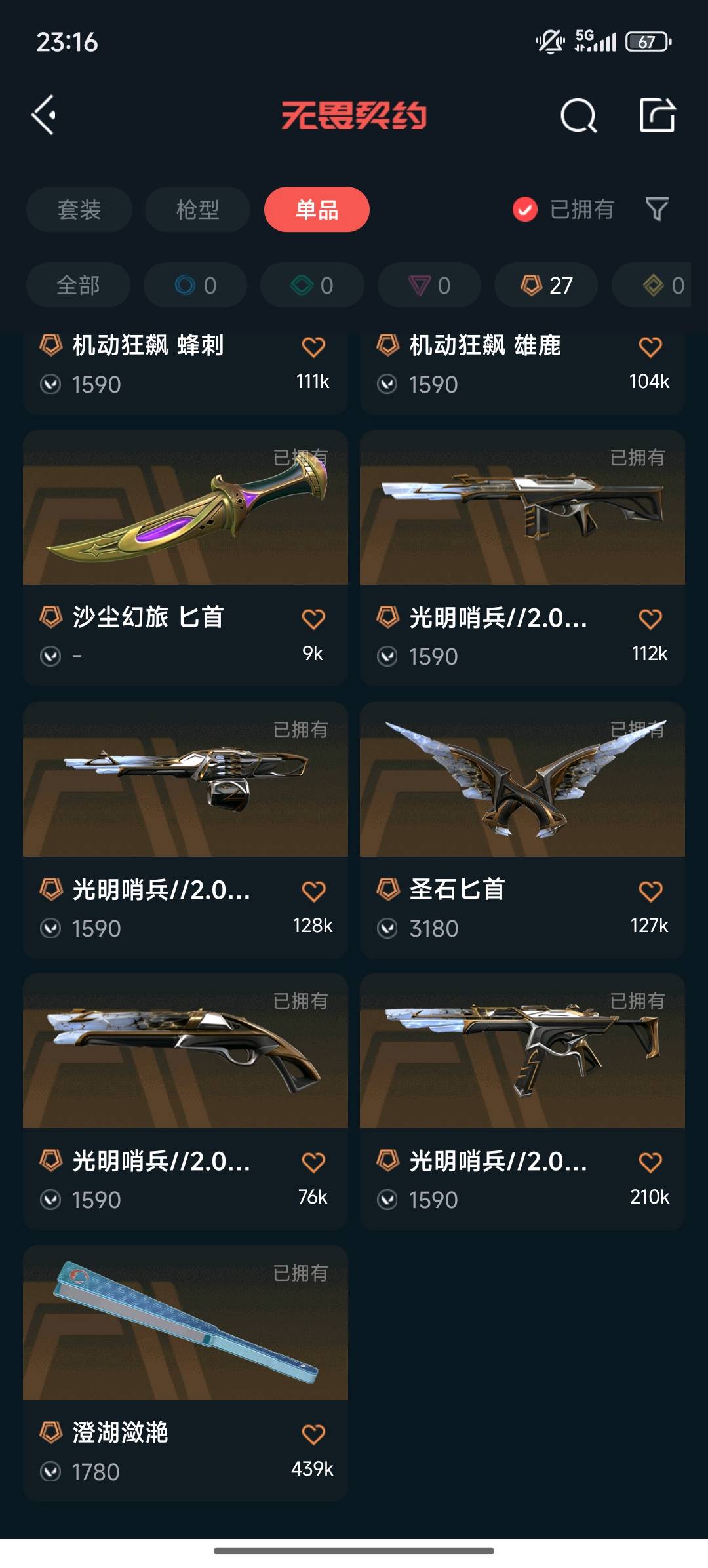 允许 英雄25 武器皮肤数量109;剥皮小刀,洪荒怒焰 狂徒,源能者娱乐系统 幻影,紫阙金琅 狂徒,天界神兵 戍卫,混沌序曲 狂徒,机动狂飙 蜂刺,