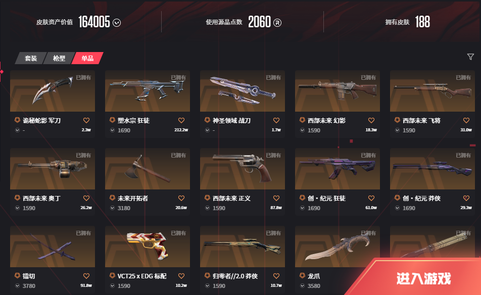 • 皮肤资产价值: 164005