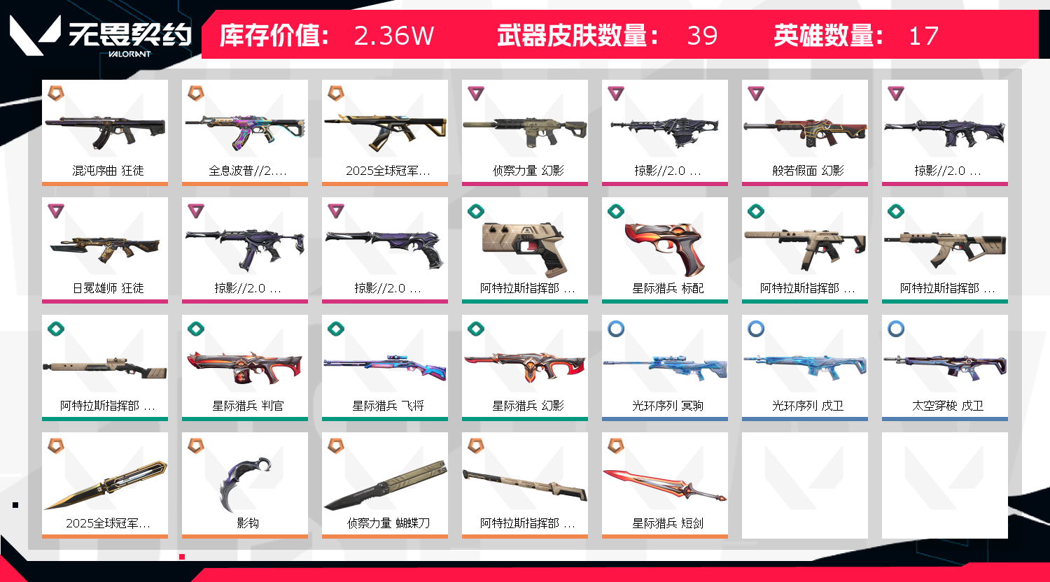 2025全球冠军赛套装(2025全球冠军赛-狂徒,2025全球冠军赛-蝴蝶刀 掠影//2.0套装(掠影//2.0-幻影,掠影//2.0-奥丁,掠影//2.0-骇灵,掠影//2.0-鬼魅,影钩) 账号冻结请点击号主协助,白天都在哦。;侦察力量 幻影,混沌序曲 狂徒,