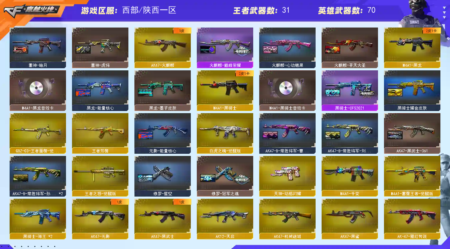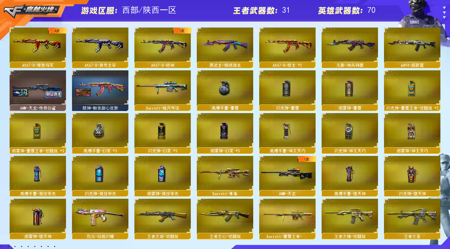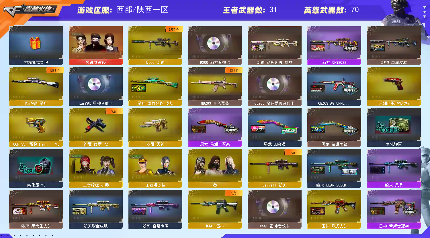 • 游戏区服:穿越火线 / 电信区 / 陕西一区
