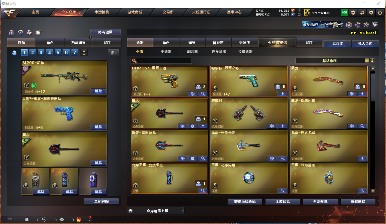 【角色】奇洋探员,乔伊教练,蛇隐宗,王者零-华冠丽服,王者涂鸦,云海玲珑, 【主武器】传说暗裔,M200-幻神,AK47-火麒麟,M4A1-黑龙,M4A1-雷神,M4A1-黑骑士,M14ebr-玄武,M4A1-神工天巧。无影-神兵利器,黑武士-锦绣游龙,超新星-热带奇洋。金色蔷薇-古蛇迷踪,QBZ03-金色蔷薇,烈火-动感闪耀,AK47-B-战神,黑骑士 -海王,白虎-电玩蓝兔,Barrett-毁灭,Barrett-极光,m200-竞技荣光,Barrett-暗月传说。烈龙-云海游龙,炫金骑士,王者白虎,王者龙血, 【副武器】沙鹰-修罗,天神-动感闪耀,修罗-古蛇迷踪,柯尔特-冠军之特,COP 357-雷霆王者, 【近身武器】屠龙。擎天,麒麟刺,屠龙-动感闪耀,擎天-云海游龙,龙啸-热带奇洋,龙啸-烈火龙威, 【投掷武器】竞技荣光套,神工天巧套,云龙要,幻灵套, 【音效卡】QBZ03-金色蔷薇音效卡,M4A1-黑骑士音效卡, 【皮肤】幻神-纸灯笼皮肤,擎天-傲竹金色皮肤,幻神-宠儿-2021mvp,M200-幻神-黄忠皮肤,雷神-源计划2.0专属皮肤,QBZ03-冠军之薇,M4A1-战神赵云,黑龙-能量核心,AK47-B-常胜将军-刘备,AK47-B-常胜将军-孙权,战神-粉色甜心皮肤,雷神-暗月,毁灭-墨兰皮肤,黑骑士-冠军之势,QBZ03-荣耀世冠白鲨,修罗-CFSTAR,毁灭-黑大圣皮肤,AK47老兵传说皮肤,天龙-CFSTAR,火麒麟-冠军之心,;柯尔特-冠军之特,Knife-冠军之刃,QBZ03-金色蔷薇,M200-幻神,传说暗裔,