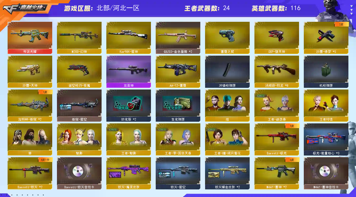首页 > 租号大厅 > 穿越火线 > 网通区/河北一区 > 【BB35】双幻神星神白虎传说光耀qbz蔷薇丨雷黑毁音效丨冠军魄武势雷霆堕天神COP王者魅影炼狱6烈