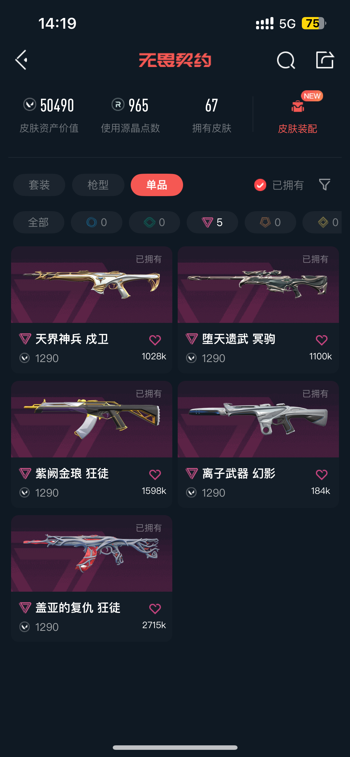 • 皮肤资产价值: 50490