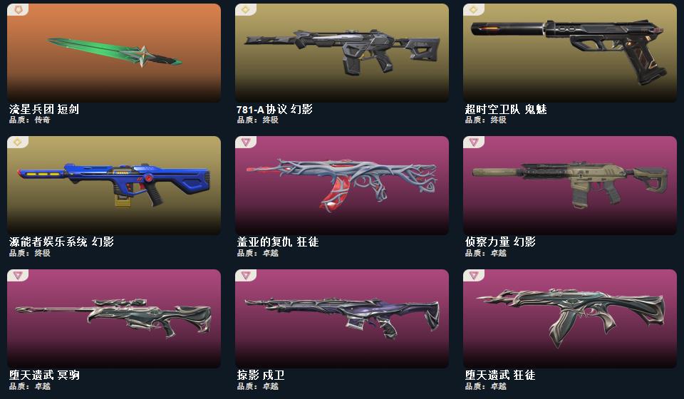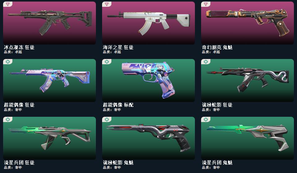 wegame无畏契约★幻心猎手 鬼魅,塑水宗 正义,阿特拉斯指挥部 标配,超时空卫队 鬼魅,奇幻朋克 鬼魅,折光棱晶 标配,末日之翼 短炮,诡秘蛇影 鬼魅,星云暗涌 鬼魅,VCT25 x EDG 标配,超限闪存 正义,模拟赫兹 鬼魅,浮光跃金 标配,超能偶像 标配,聚合之力 狂怒,采蜜小蜂队 鬼魅,流星兵团 鬼魅,纤云弄巧 正义,战术熊与伙伴们 标配,纤云弄巧 短炮,战术熊与伙伴们 狂怒,珍珠棘贝 狂怒,深海水族 短炮,钢轨卫士 短炮,钢轨卫士 狂怒,光导