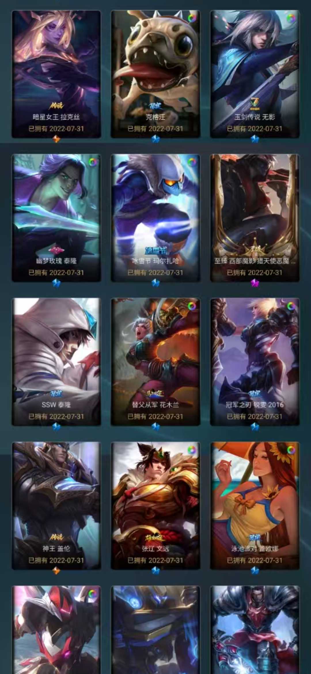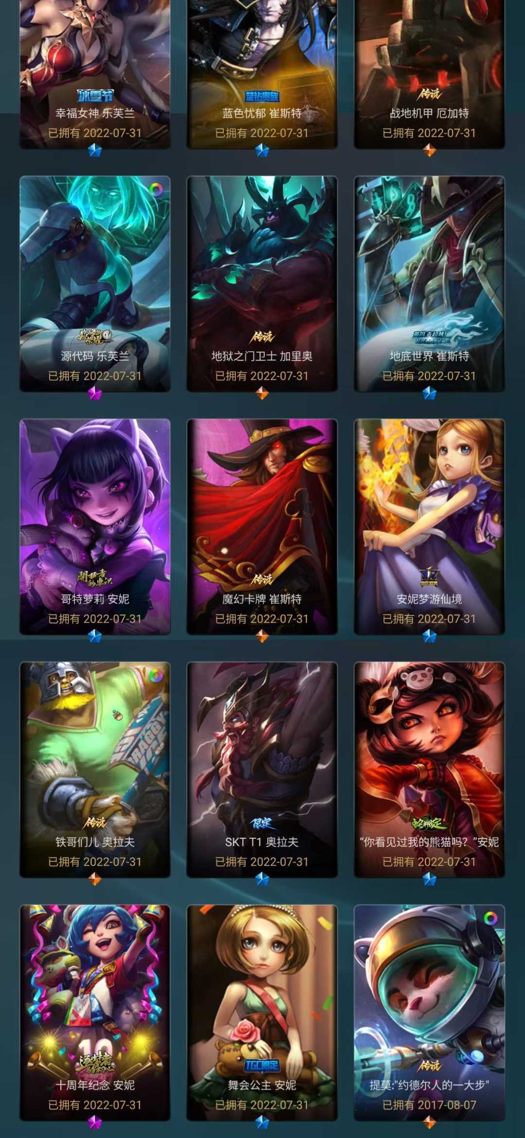 1248皮肤✨2终极✨13传说✨182限定✨76传说✨195史诗✨梦游仙境✨skt✨限定