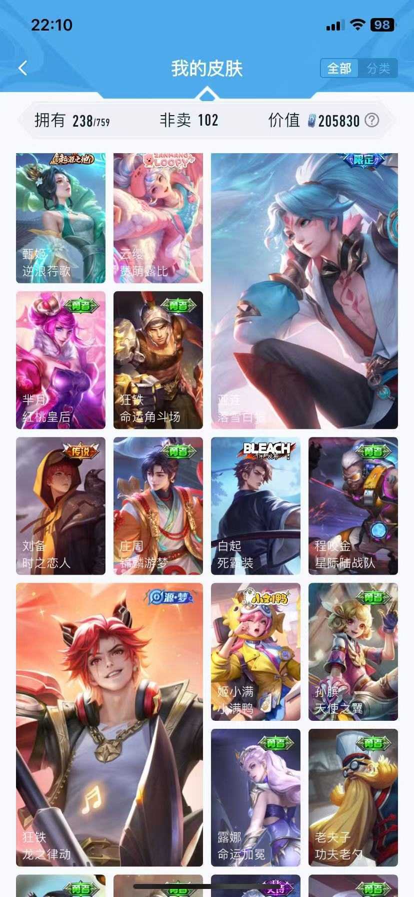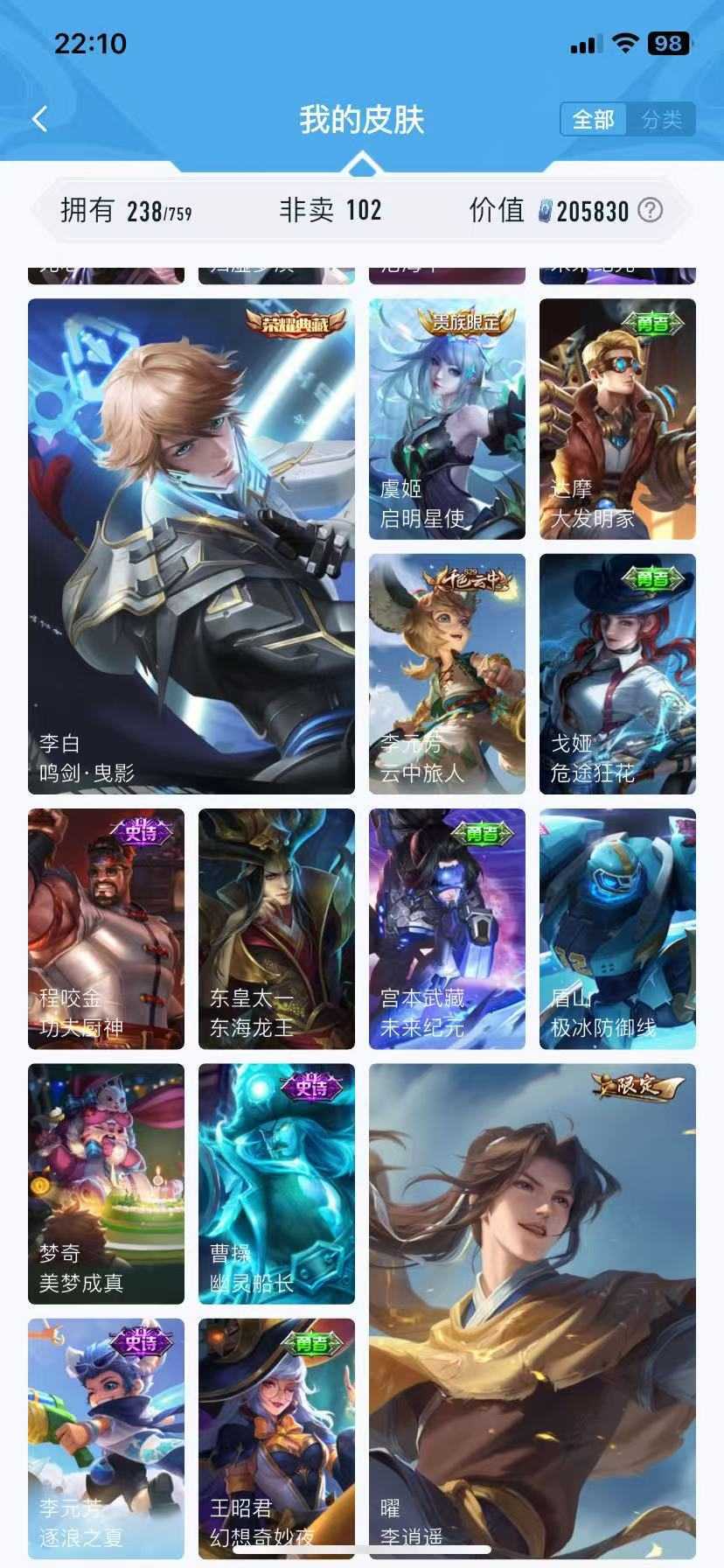 【非沄直接上号】极品V10★三历史国标★430皮★六典藏★诸葛亮新典藏★虎年五限定★鸣剑戈影★活力突击️★多限定