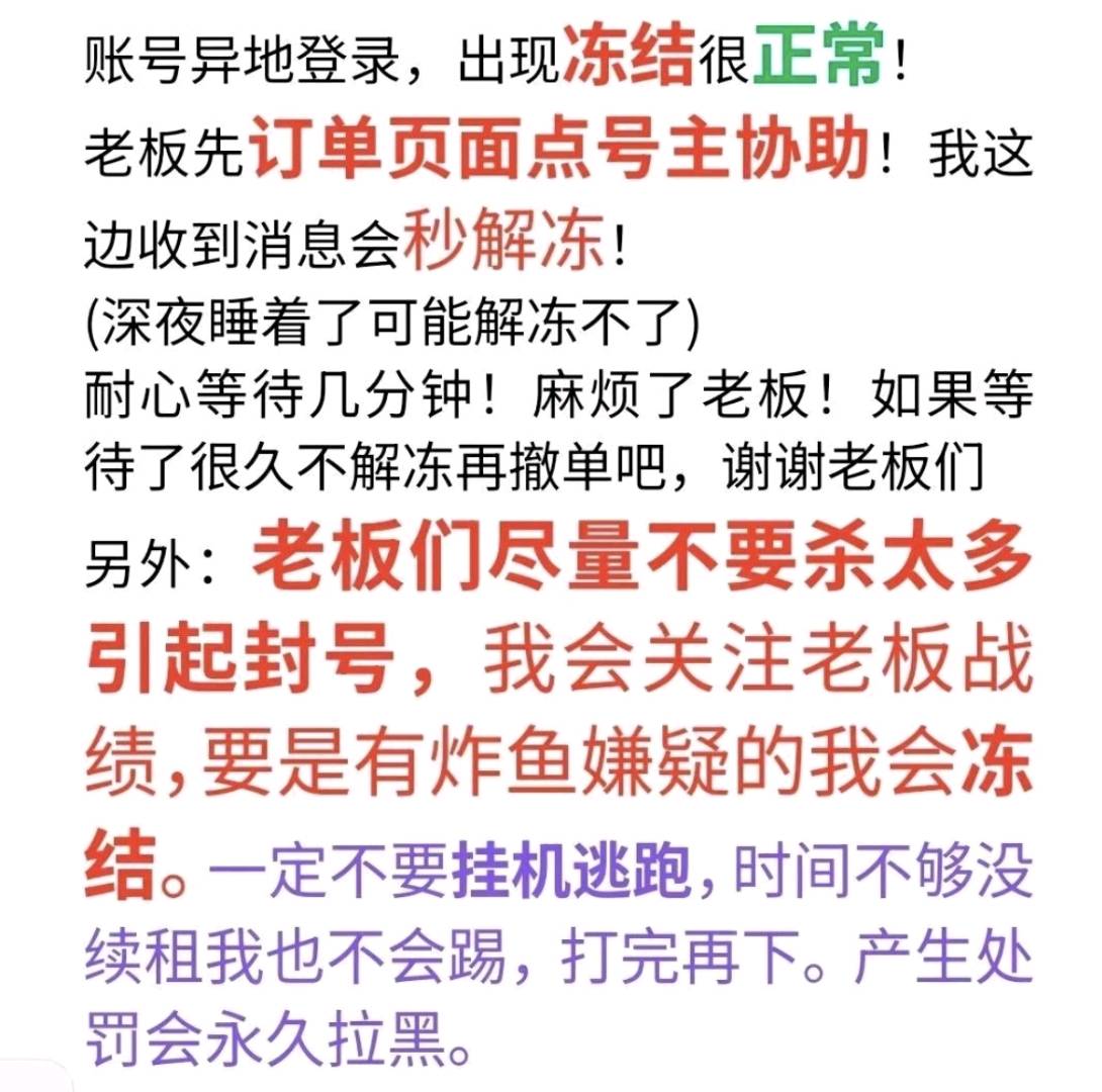 • 租号押金:0.0(订单结束后24小时退还)