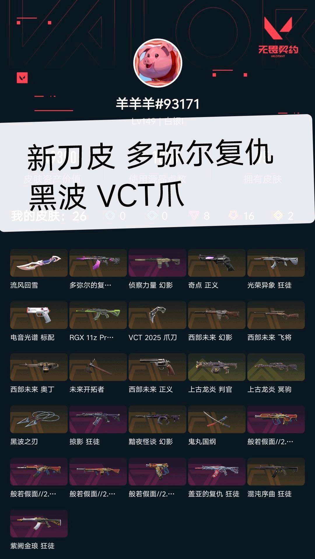 秒解冻⚡️新刀皮❤️8狂徒皮肤❤️VCT爪❤️显卡盖亚光荣混沌紫金多弥尔ak❤️侦查❤️黑波流风回雪